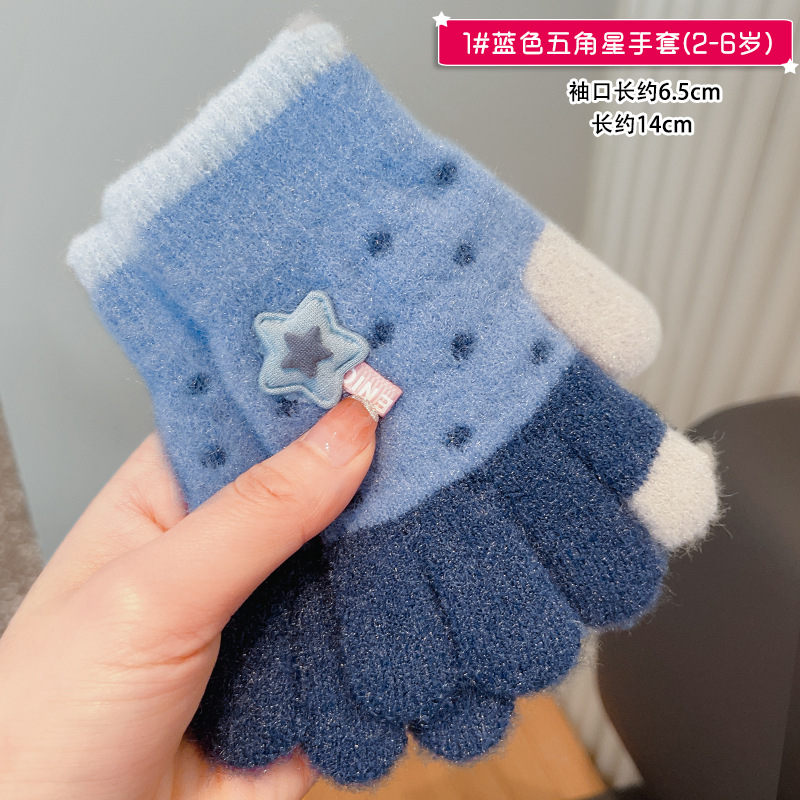 어린이 장갑 5 인조 겨울 따뜻한 양모 니트 중대형 어린이 소년 소녀 학생 겨울 손가락 얇은스토어 가기
