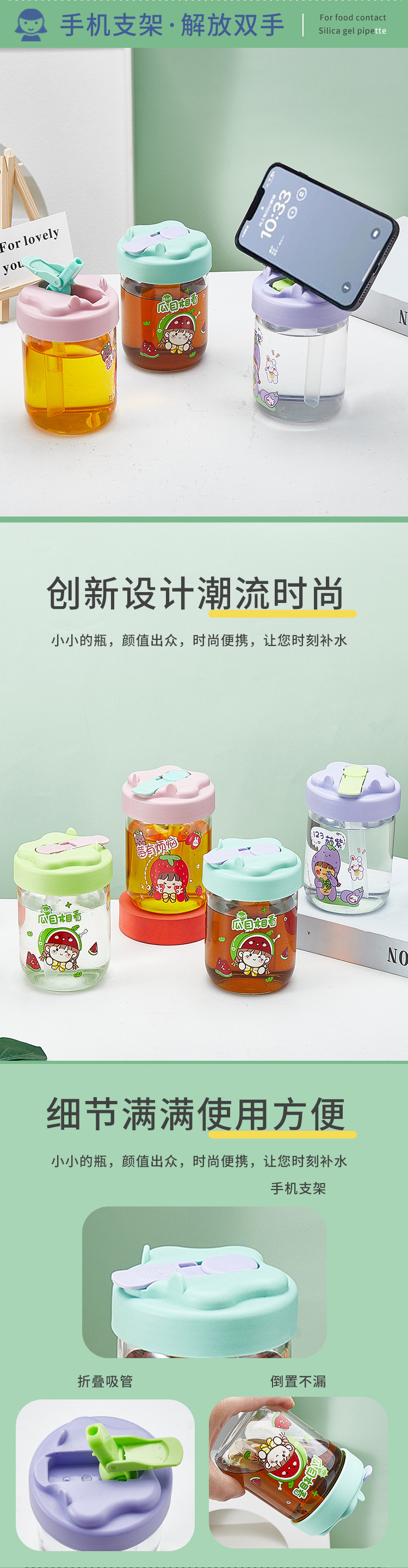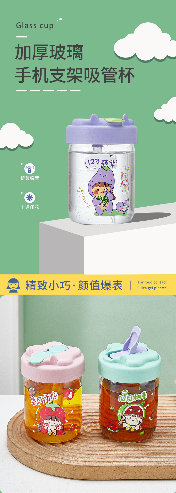 창조적 인 우유 차 커피 컵 휴대 전화 홀더 유리 물 컵 스티커 커피 컵 학생 가정용 밀짚 컵