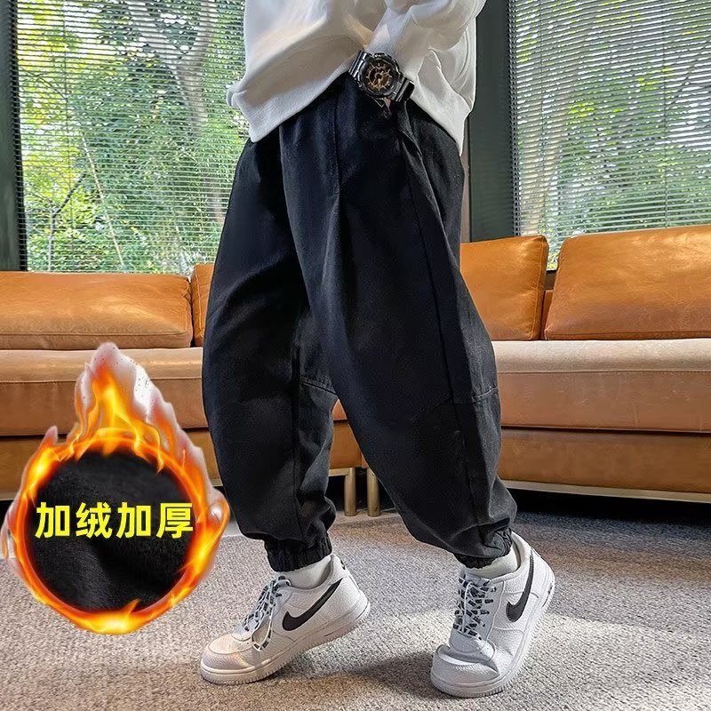 소년 봄과 가을 어린이 바지 가을과 겨울 기모 작업복 중간 및 큰 어린이 가을 유행 캐주얼 바지 유행
