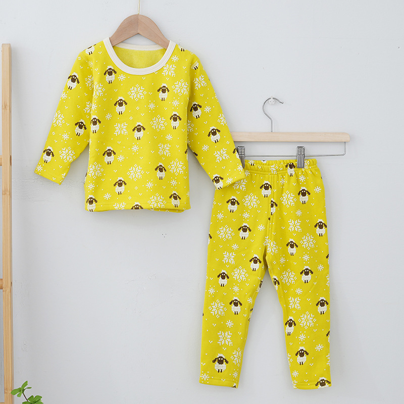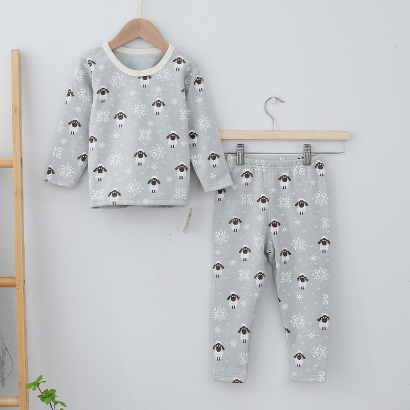 가을과 겨울 뼈없는 기모 어린이 잠옷 세트 클래스면 스트레치 열 속옷 소년 소녀 홈웨어스토어 가기