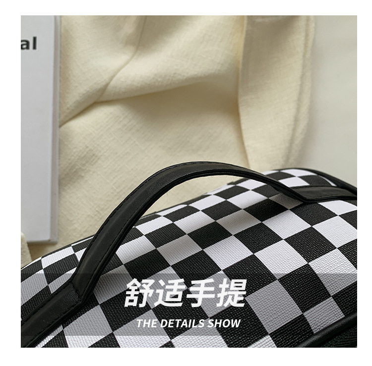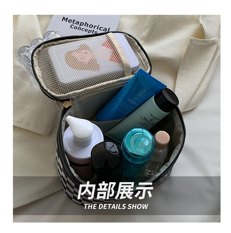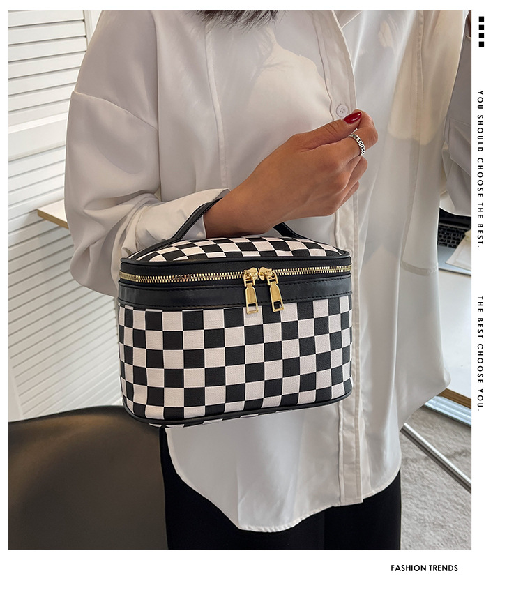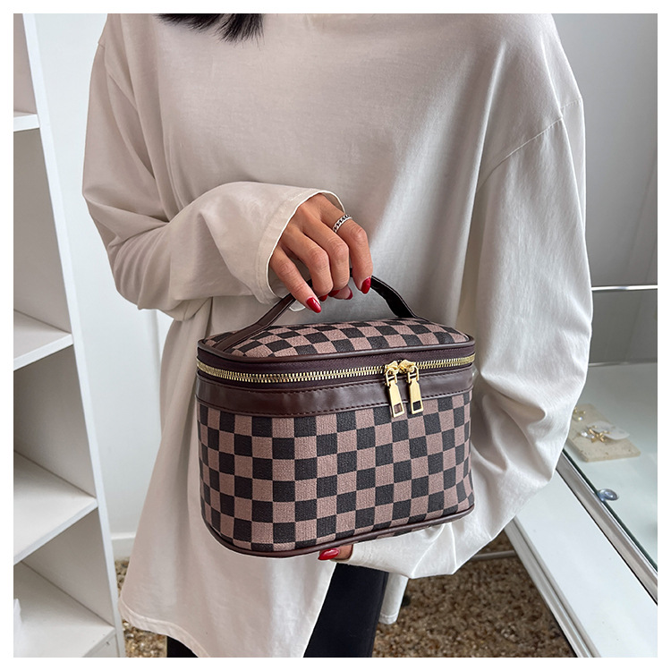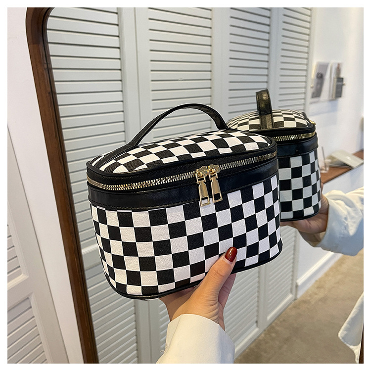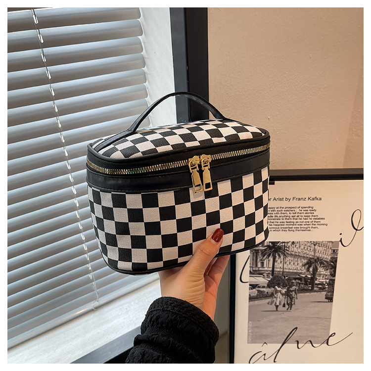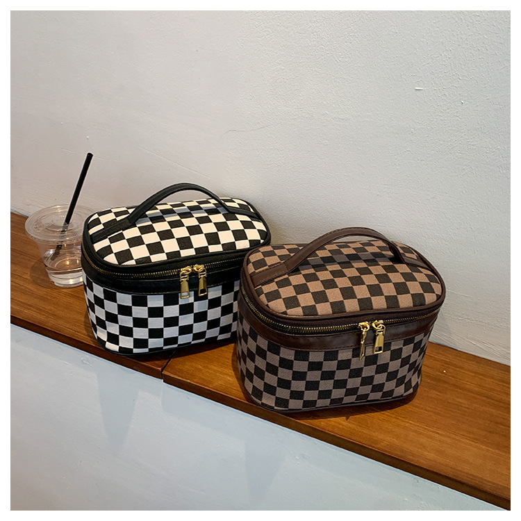 대외 무역용 휴대용 프린트 체크무늬 화장품 가방 사각형 PU 화장품 케이스 세면용품 대용량 수납 가방 체커보드 무늬 짙은 녹색스토어 가기