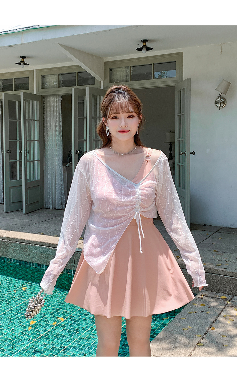 뚱뚱한 여성용 수영복 mm 200파운드 스플릿 블라우스 3피스 배를 덮는 보수적인 긴팔 큰 가슴 슬리밍 온천 수영복스토어 가기