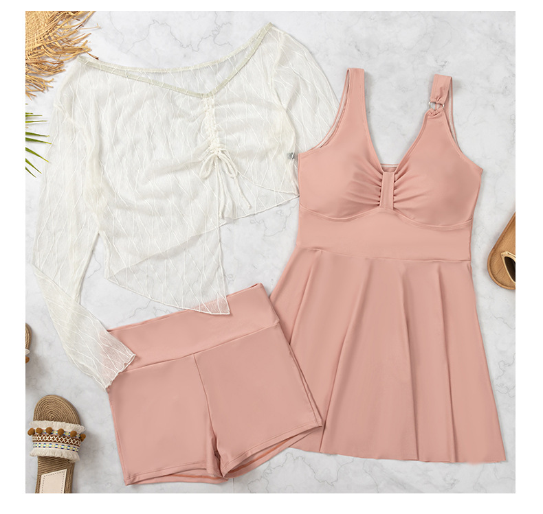 뚱뚱한 여성용 수영복 mm 200파운드 스플릿 블라우스 3피스 배를 덮는 보수적인 긴팔 큰 가슴 슬리밍 온천 수영복