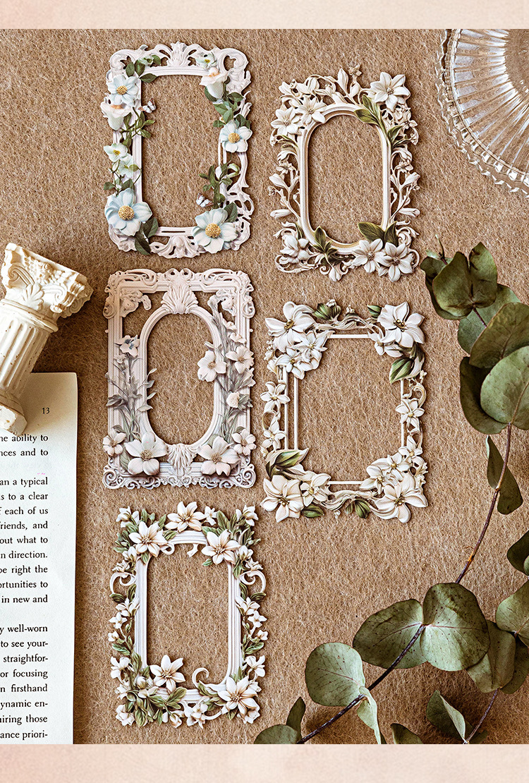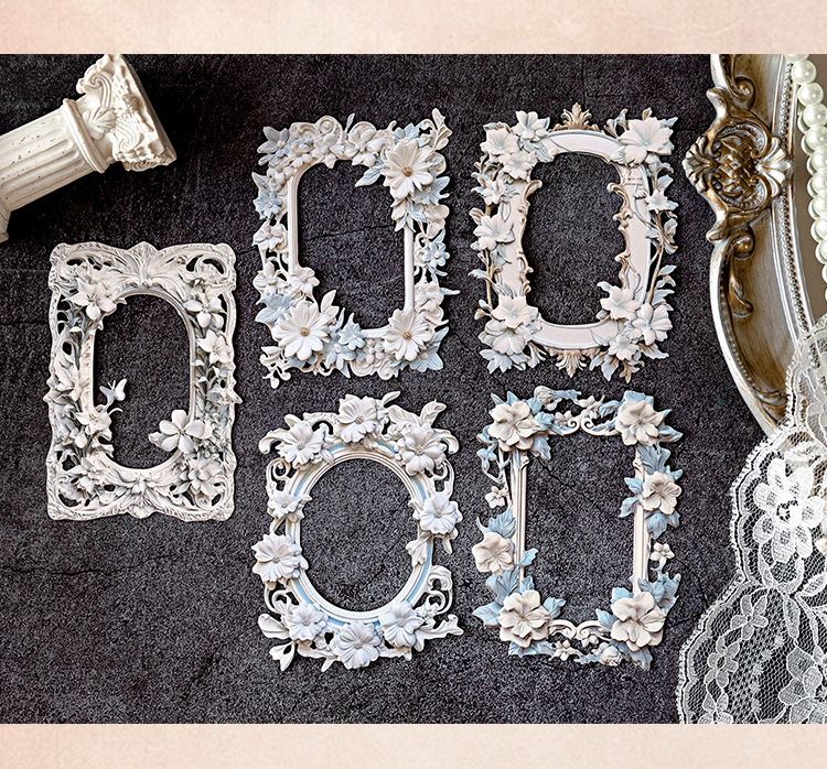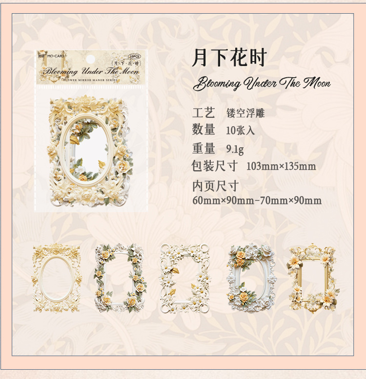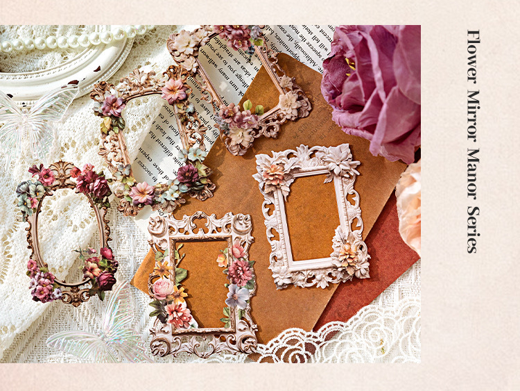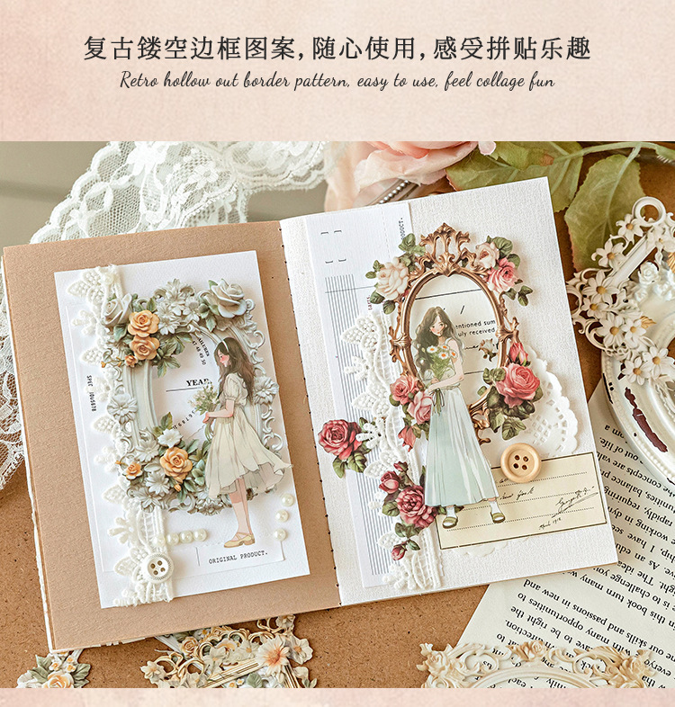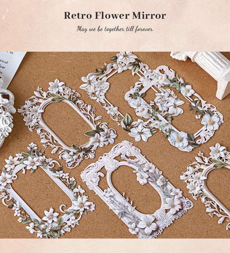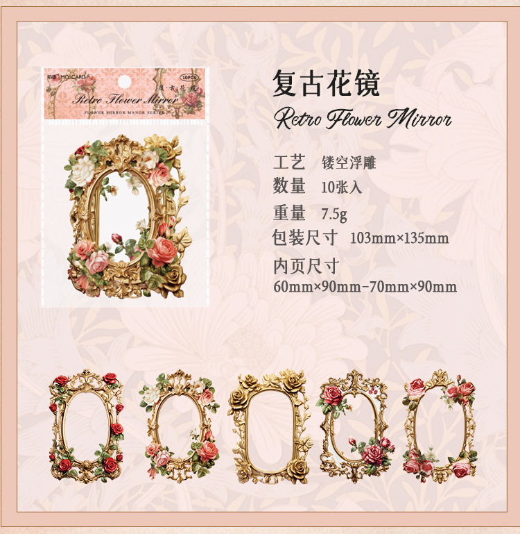 모 모 모 빈 아웃 엠보싱 빈티지 프레임 콜라주 카드 꽃 거울 매너 시리즈 유럽 꽃 사진 프레임 저널 장식 자료