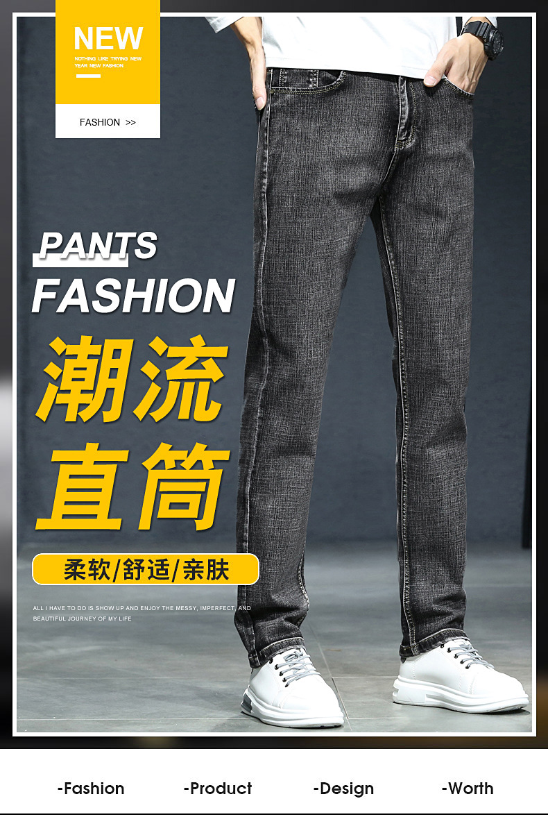 스포트 도매 남성 청바지 봄과 가을 새로운 청소년 편안한 캐주얼 바지 트렌드 올 매치 스트레이트 팬츠 남성용스토어 가기