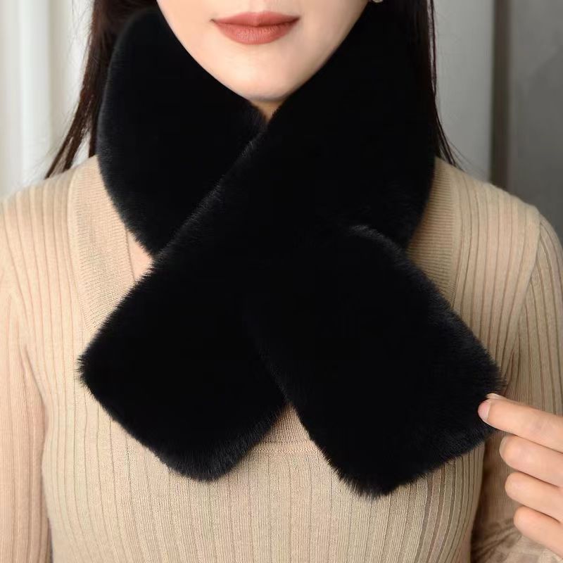한국어 스타일 여성 겨울 모조 렉스 토끼 모피 스카프 양면 플러시 두꺼운 스카프 모피 따뜻한 모피 목 커버 목도리