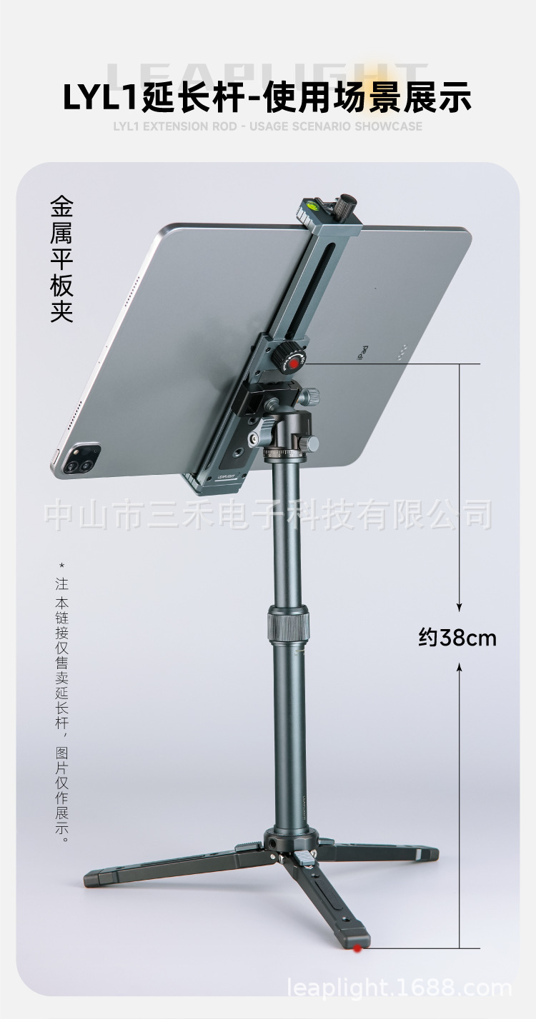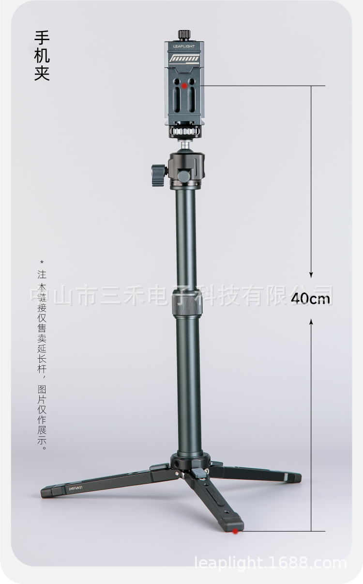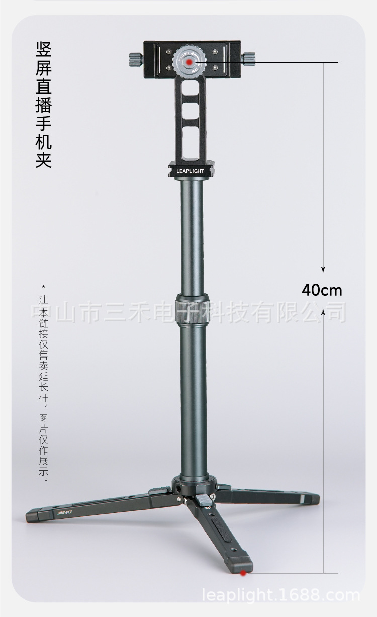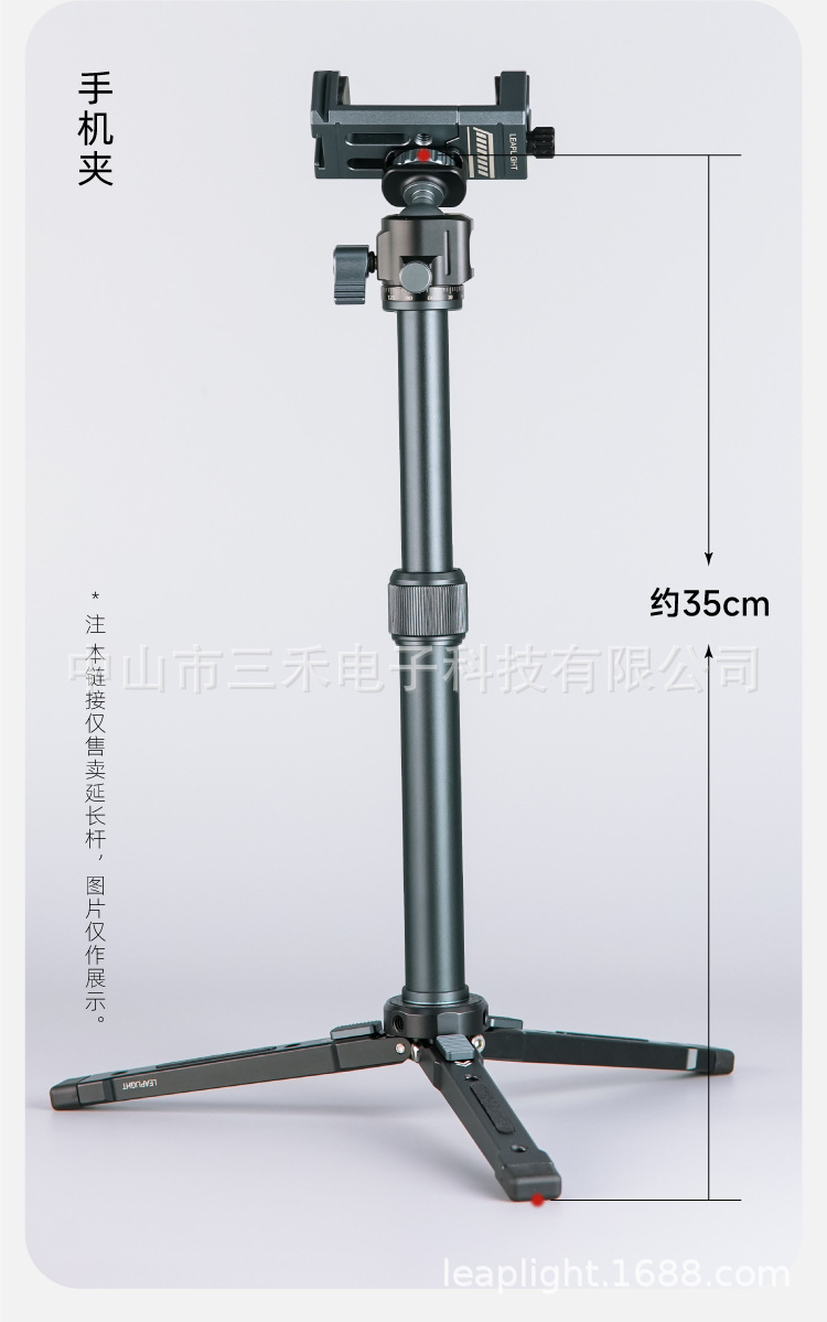 모든 금속 알루미늄 합금 삼각대 브래킷 중간 샤프트 확장로드 휴대용 신축성 데스크탑 셀카 스틱 휴대 전화 클립