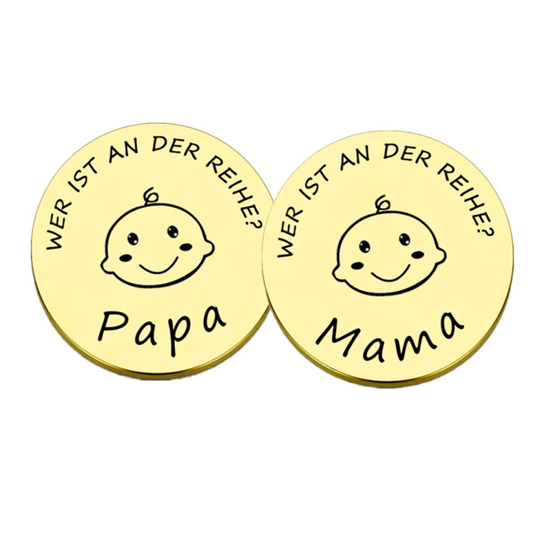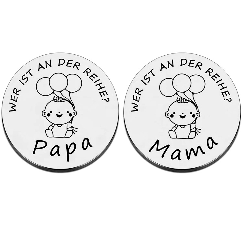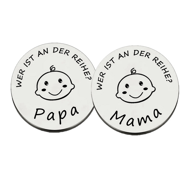 신생아 스테인레스 스틸 결정 동전 영어 독일 엄마/papa 턴 가죽 홀스터 키 체인스토어 가기