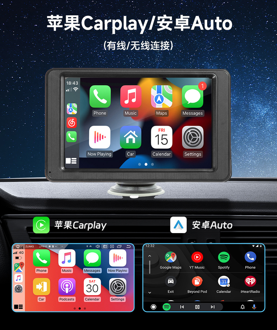 휴대용 자동차 MP5 플레이어 7 인치 Carplay 디스플레이 자동차 블루투스 라디오 반전 이미지 화면