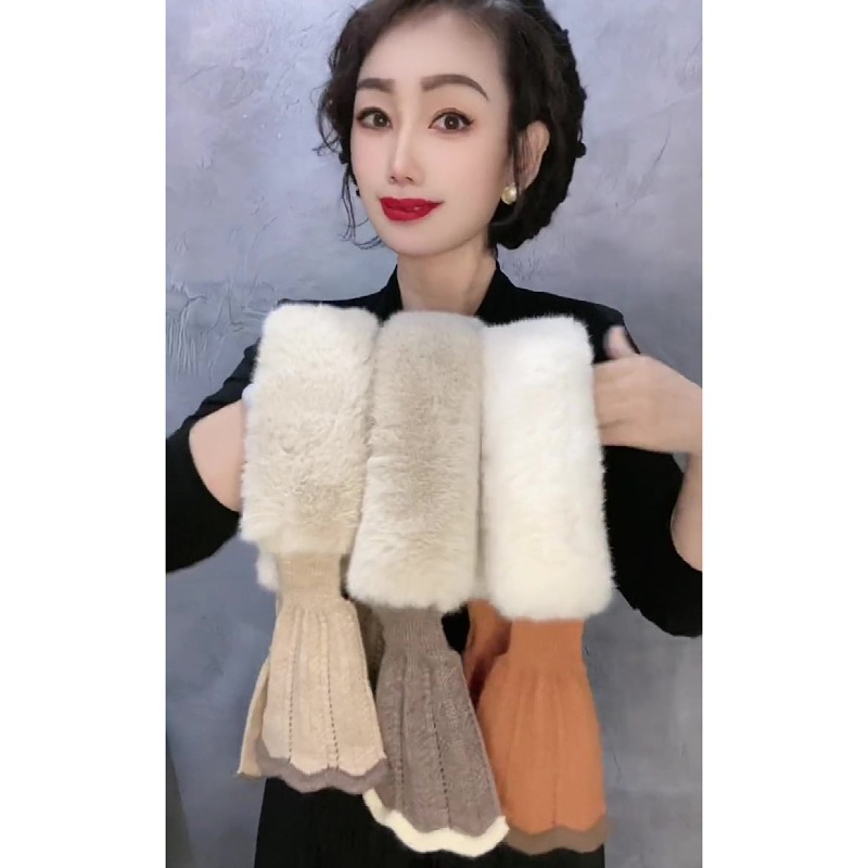 봉제 스카프 주름 여성의 가을과 겨울 인터넷 유명 인사 레이스 한국식 모조 토끼 모피 올 매치 크로스 두꺼운 모피 칼라 따뜻한 봉제스토어 가기