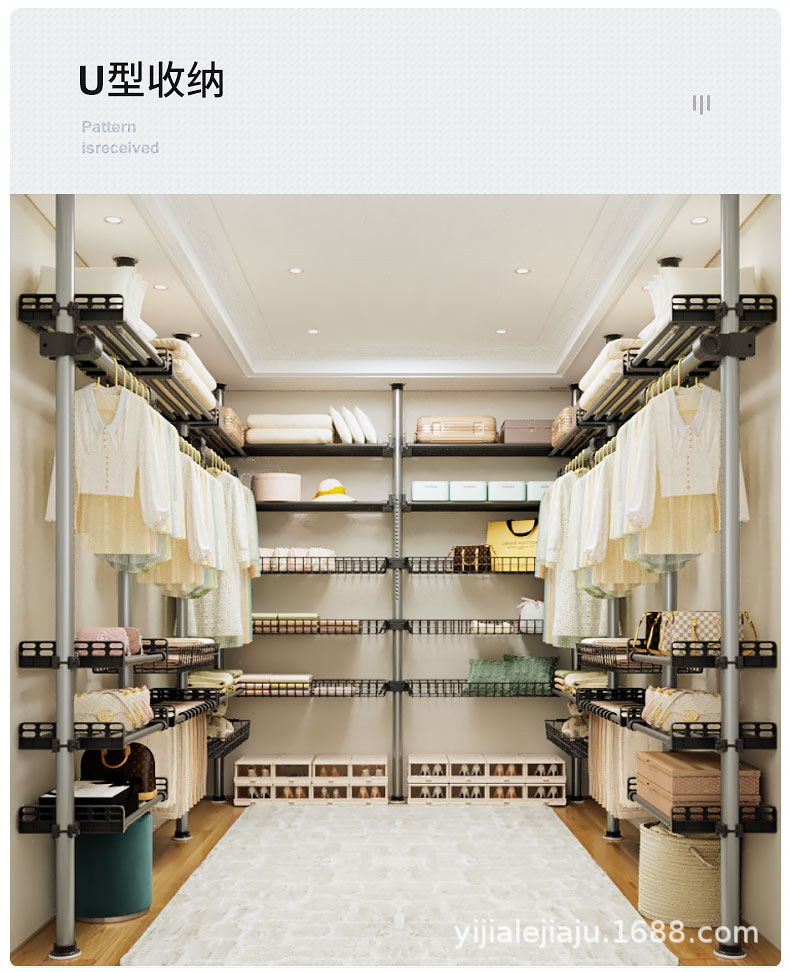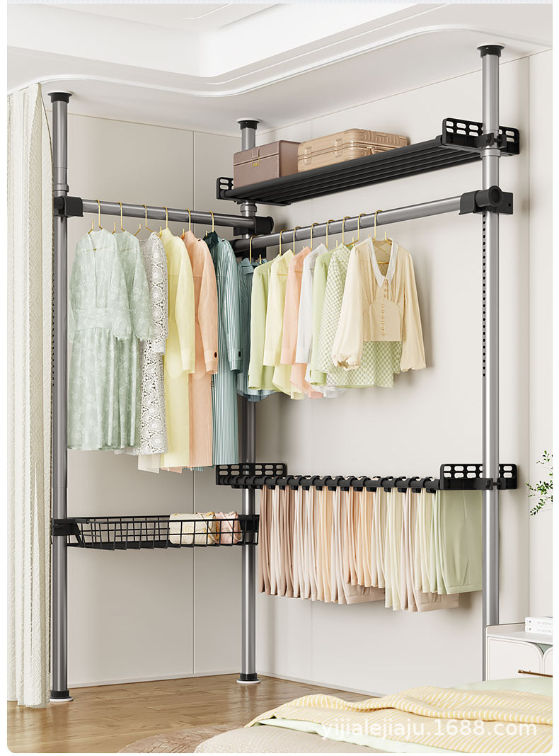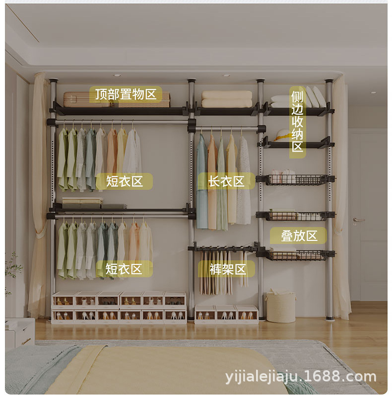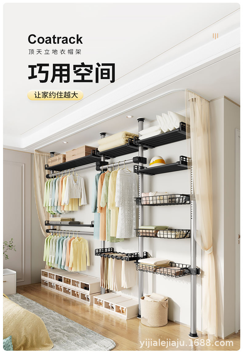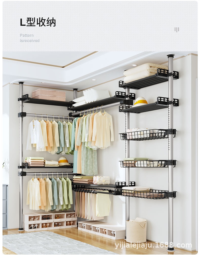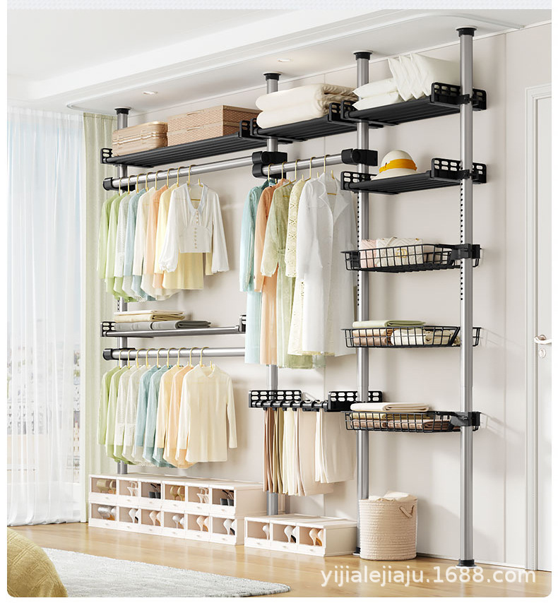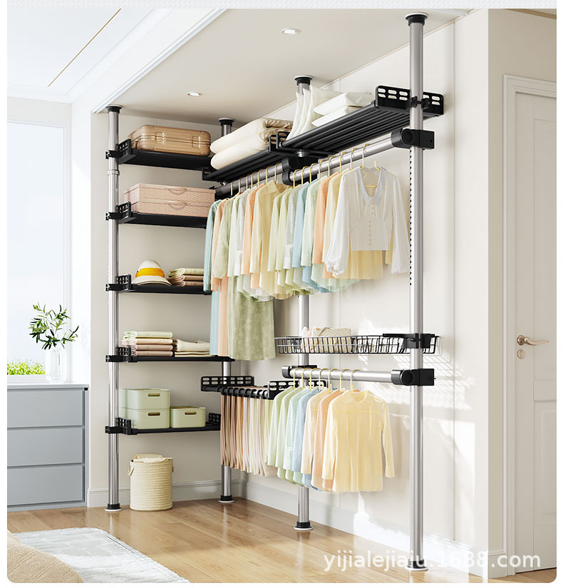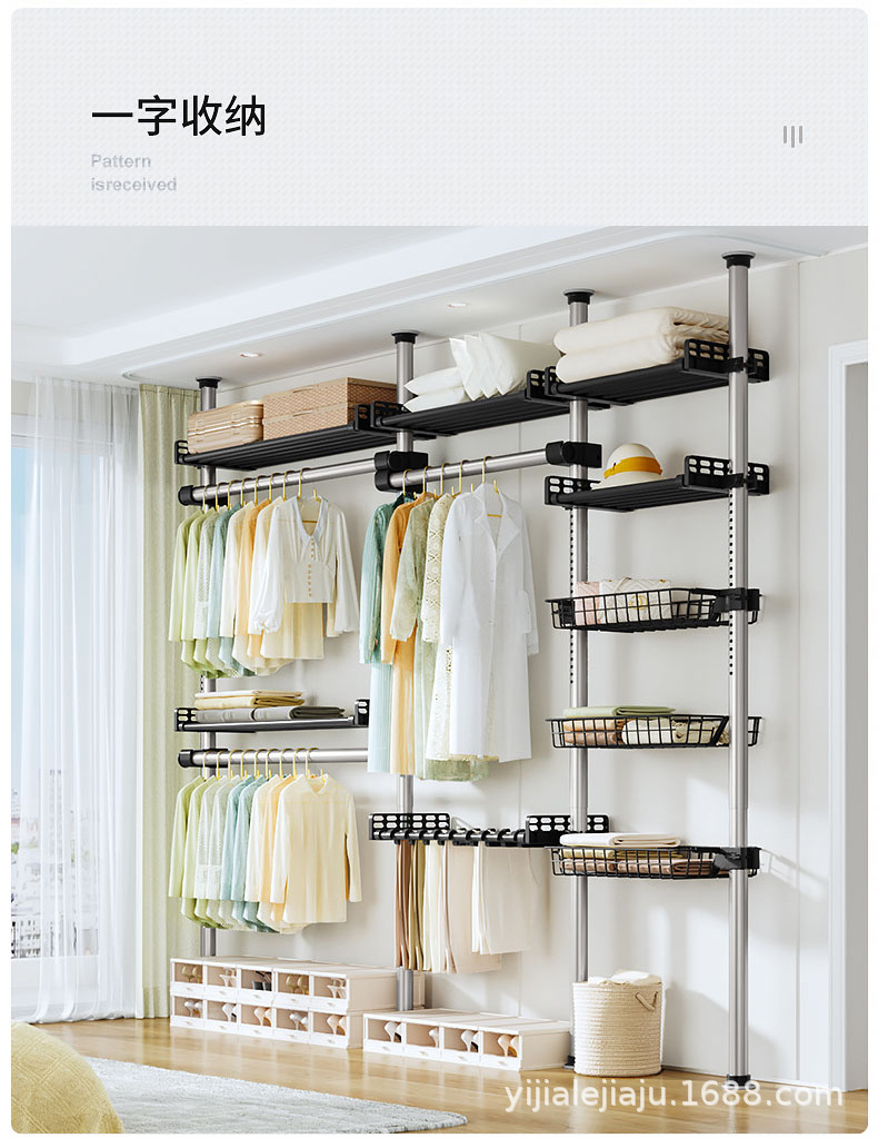 [국경 간 핫 세일] 바닥에서 천장까지 이어지는 옷장 간단한 옷장 펀치 없는 바닥 스탠딩 침실 개폐식 수납 선반