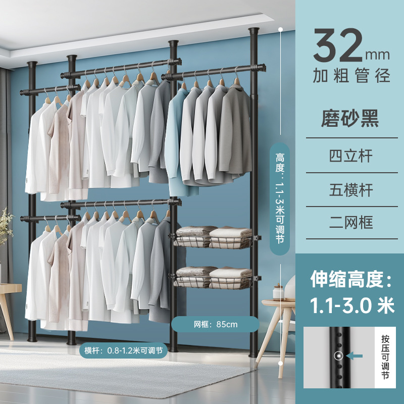 [국경 간 핫 세일] 바닥에서 천장까지 이어지는 옷장 간단한 옷장 펀치 없는 바닥 스탠딩 침실 개폐식 수납 선반스토어 가기