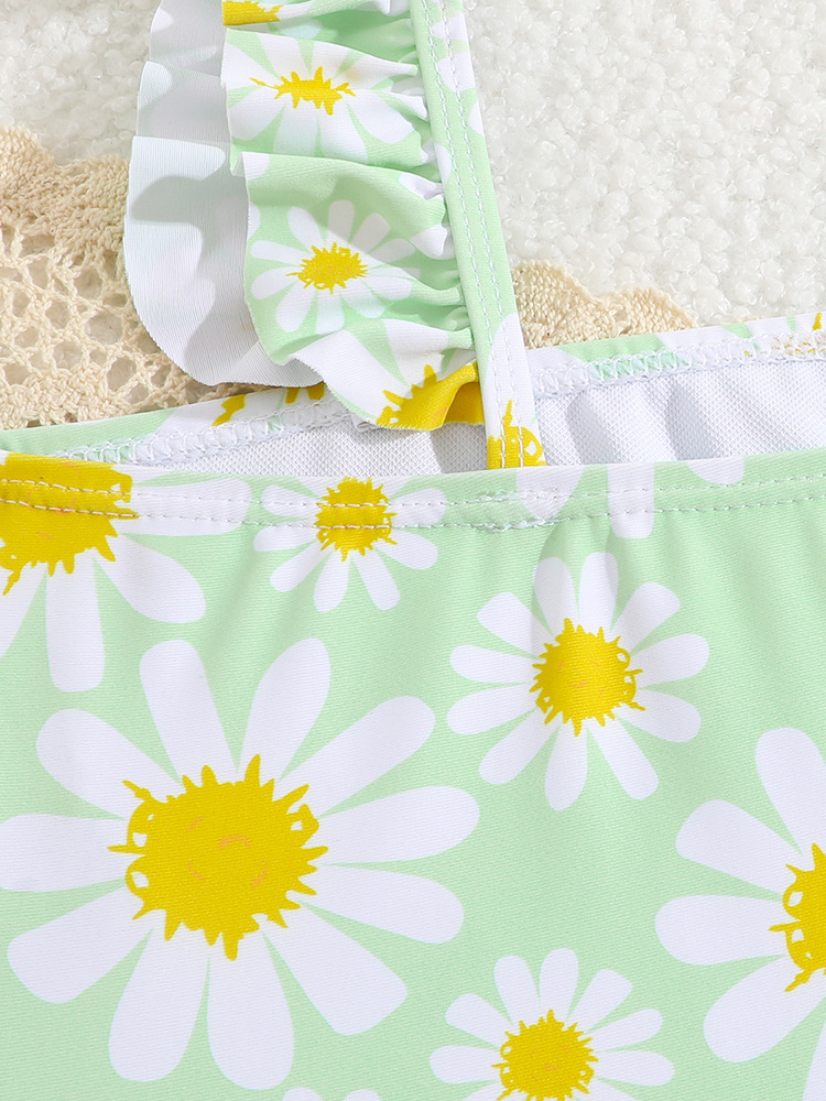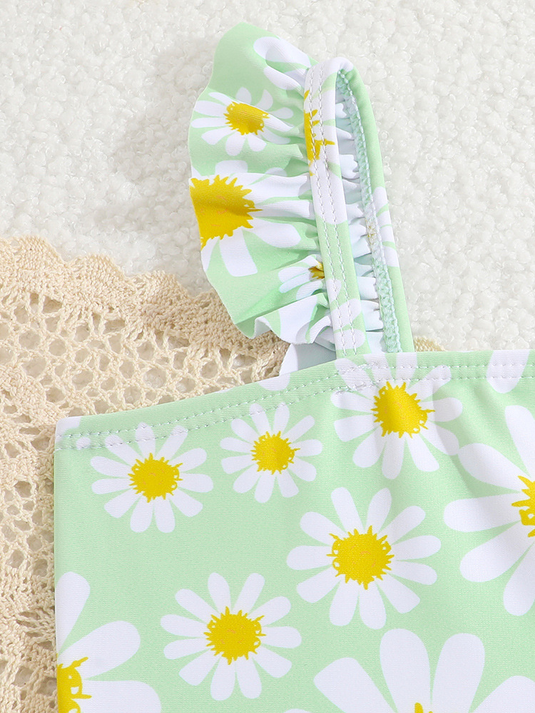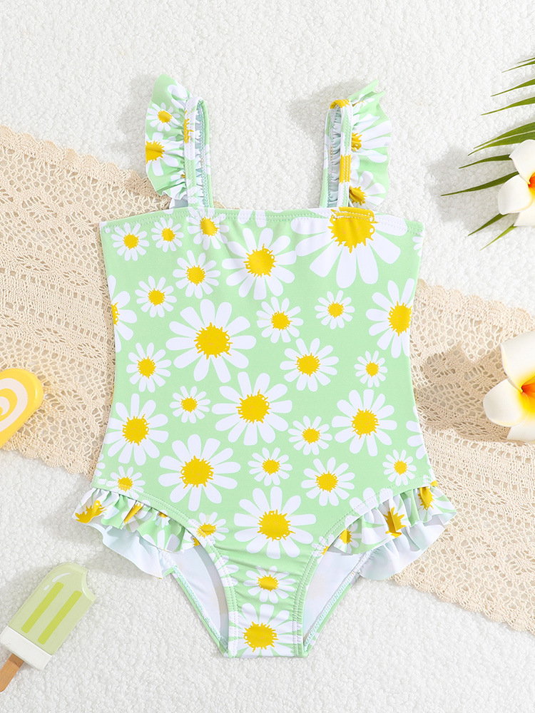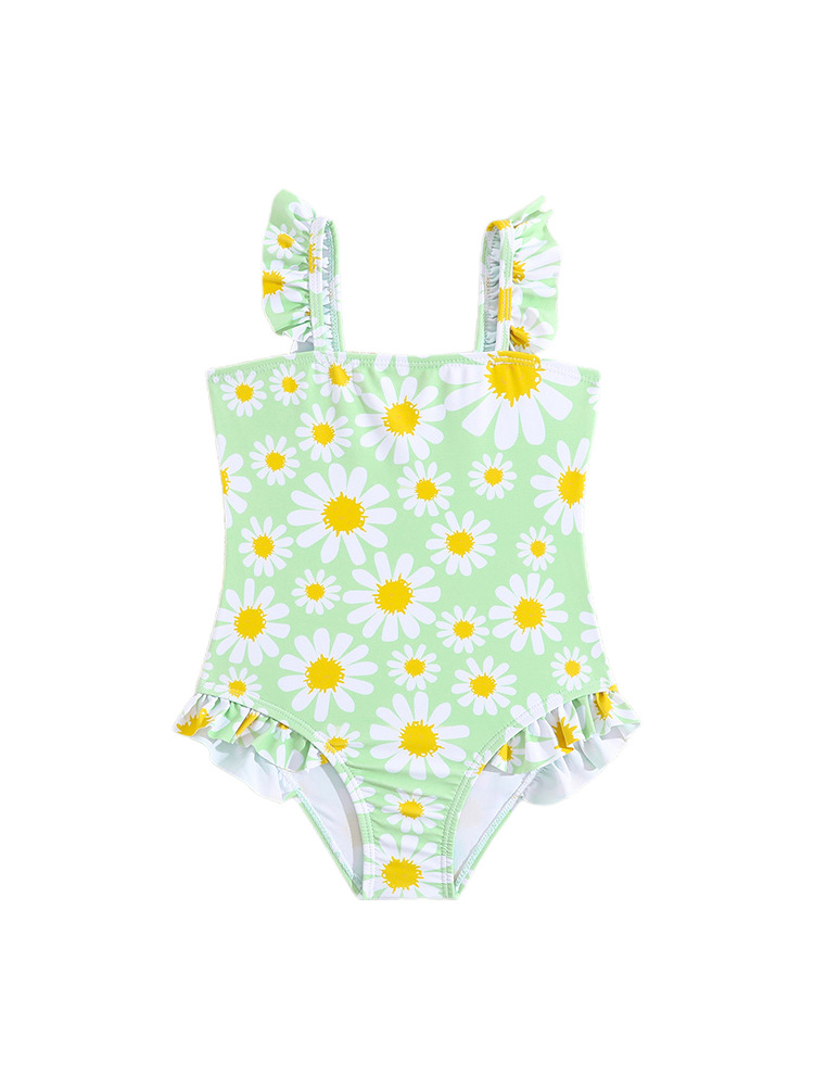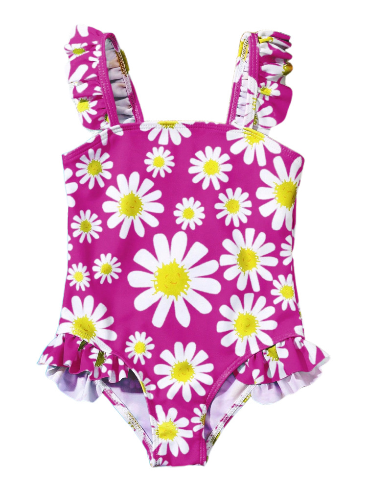 유럽과 미국의 새로운 소녀 어린이 원피스 수영복 여성 꽃 프린트 달콤한 귀여운 만화 어린이 수영복 아마존