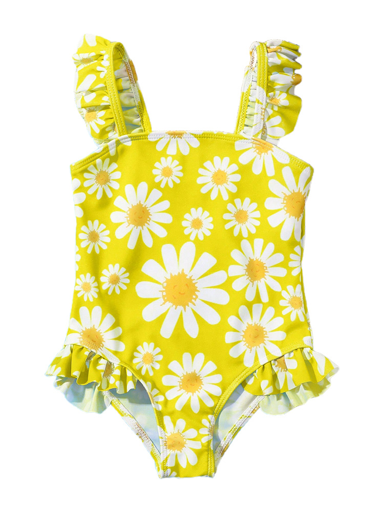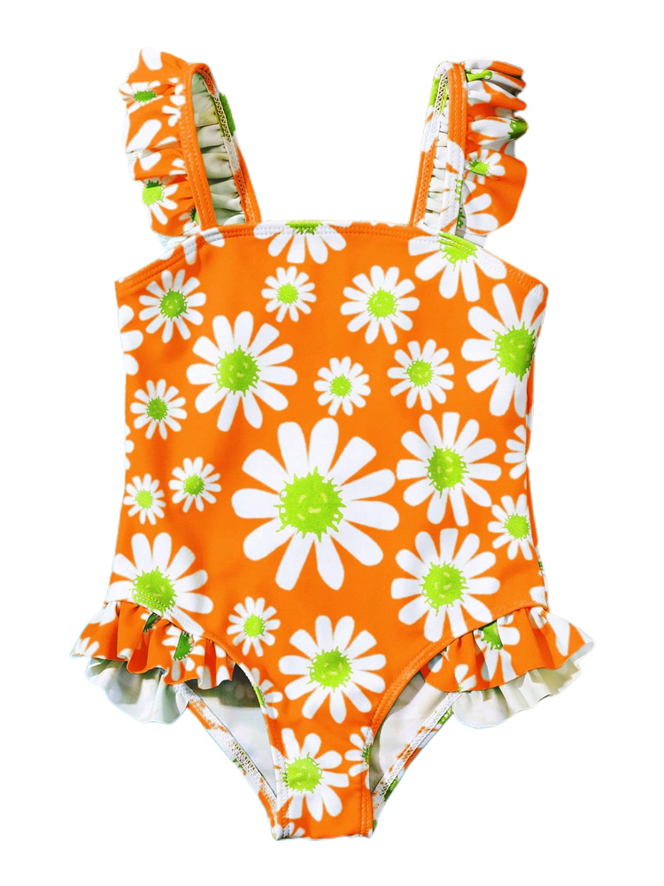 유럽과 미국의 새로운 소녀 어린이 원피스 수영복 여성 꽃 프린트 달콤한 귀여운 만화 어린이 수영복 아마존스토어 가기