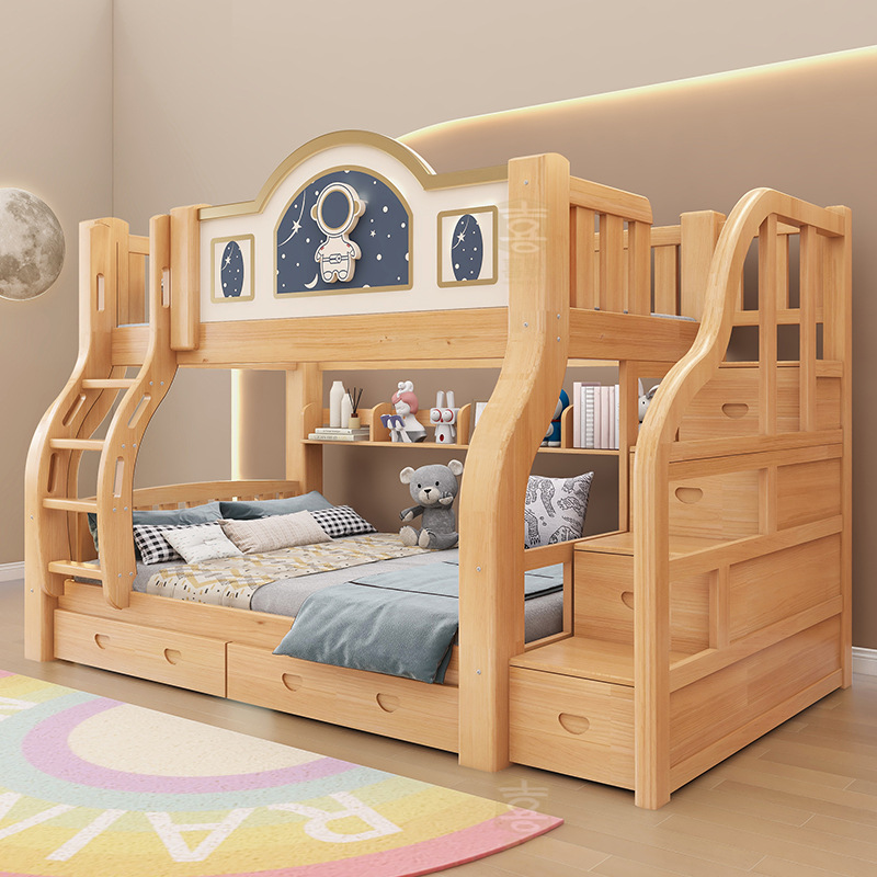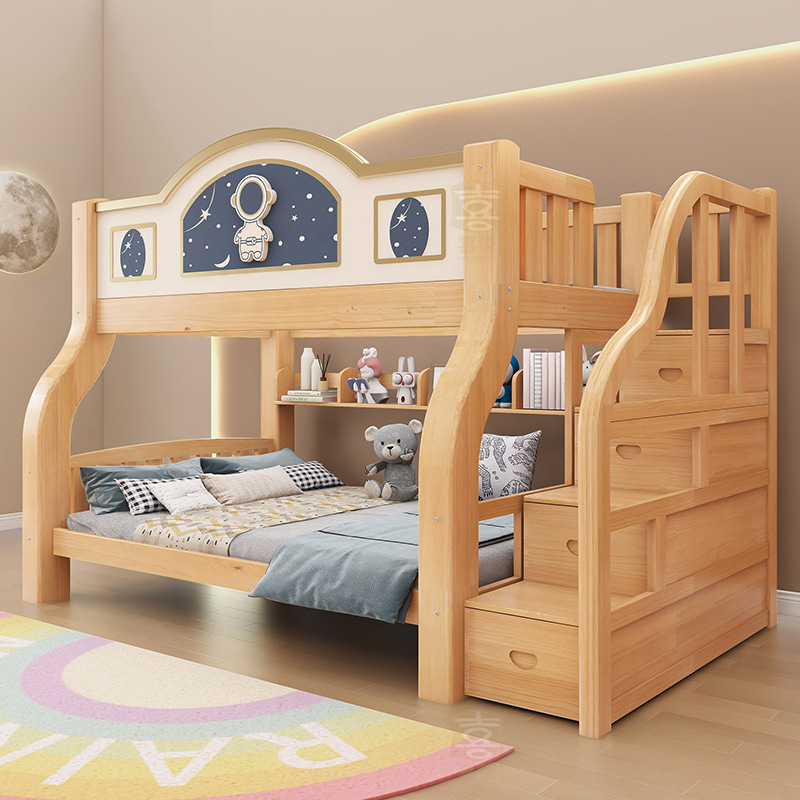 Xi zhi 단단한 나무 침대 성인 2 층 침대 어머니 침대 침대 침대 침대 침대 침대 어린이 높고 낮은 침대 이층 침대 어머니 침대