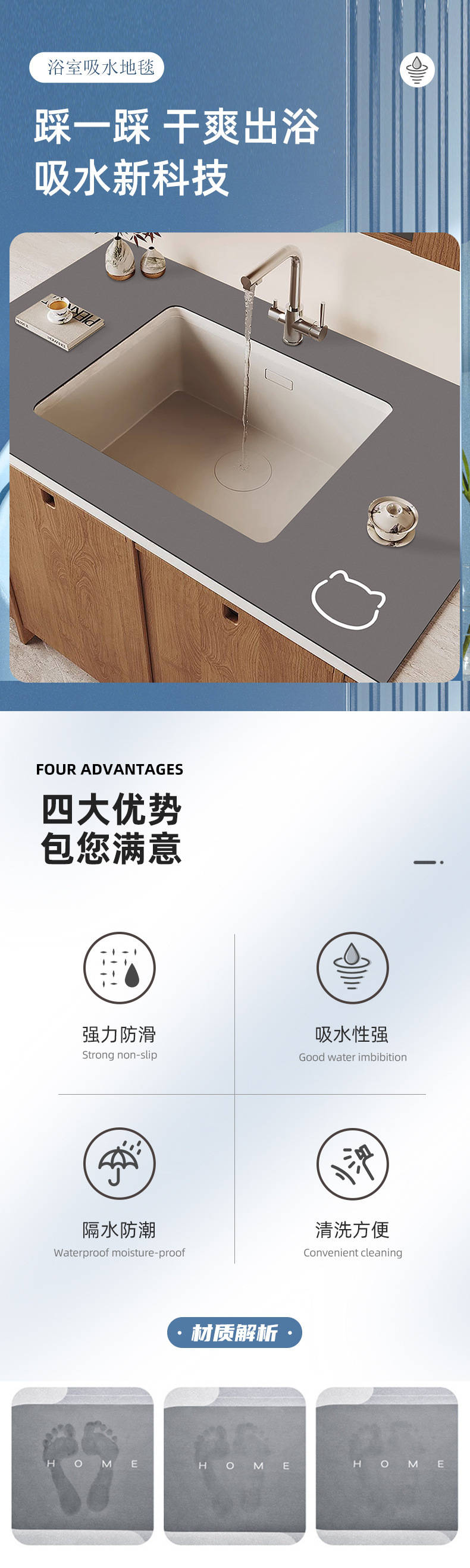 현대적인 미니멀리스트 주방 싱크대 배수 매트 미끄럼 방지 바닥 매트 싱크대 흡수성 매트 diatom 진흙 주방 카펫 바닥 매트
