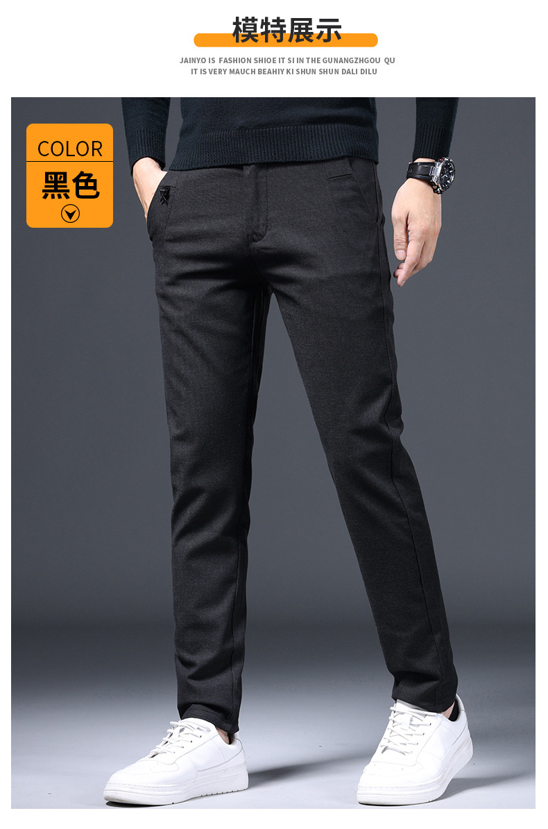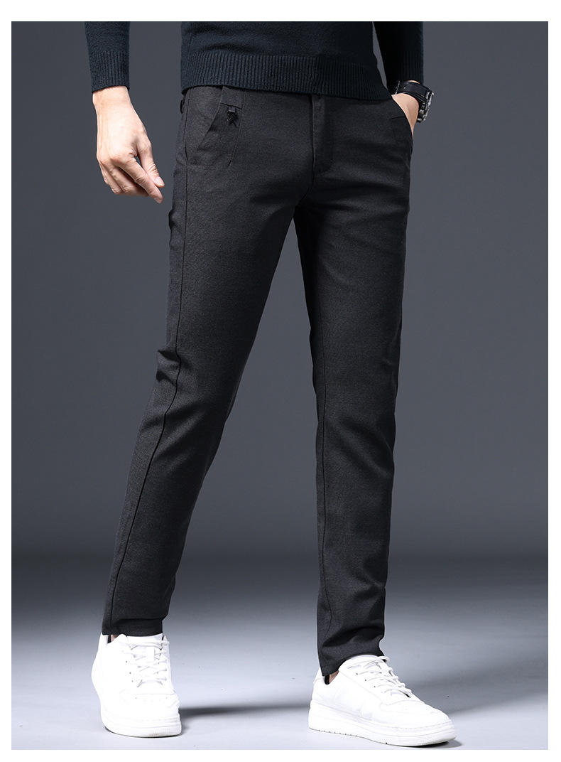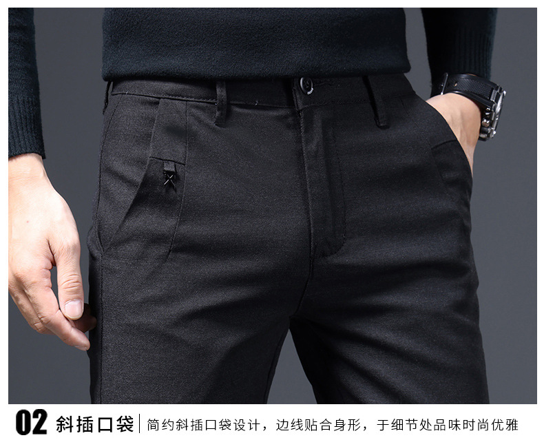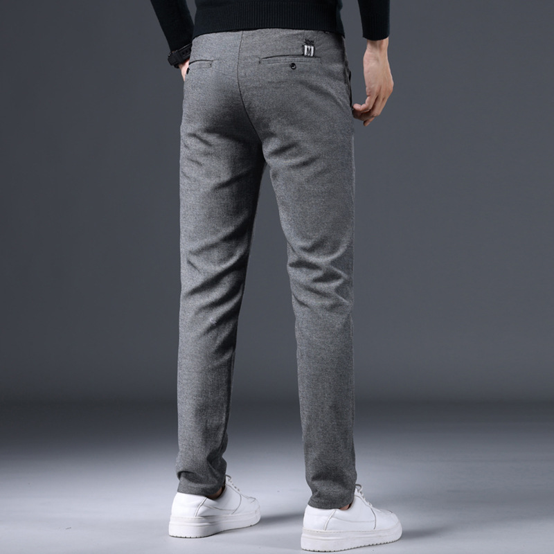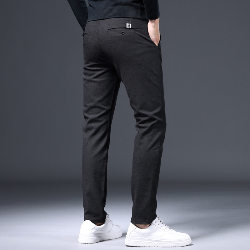 간단한 패션 남성용 바지 편안한 가벼운 비즈니스 바지 남성용 긴 스테이플 코튼 스트레치 슬림 핏 스트레이트 캐주얼 바지