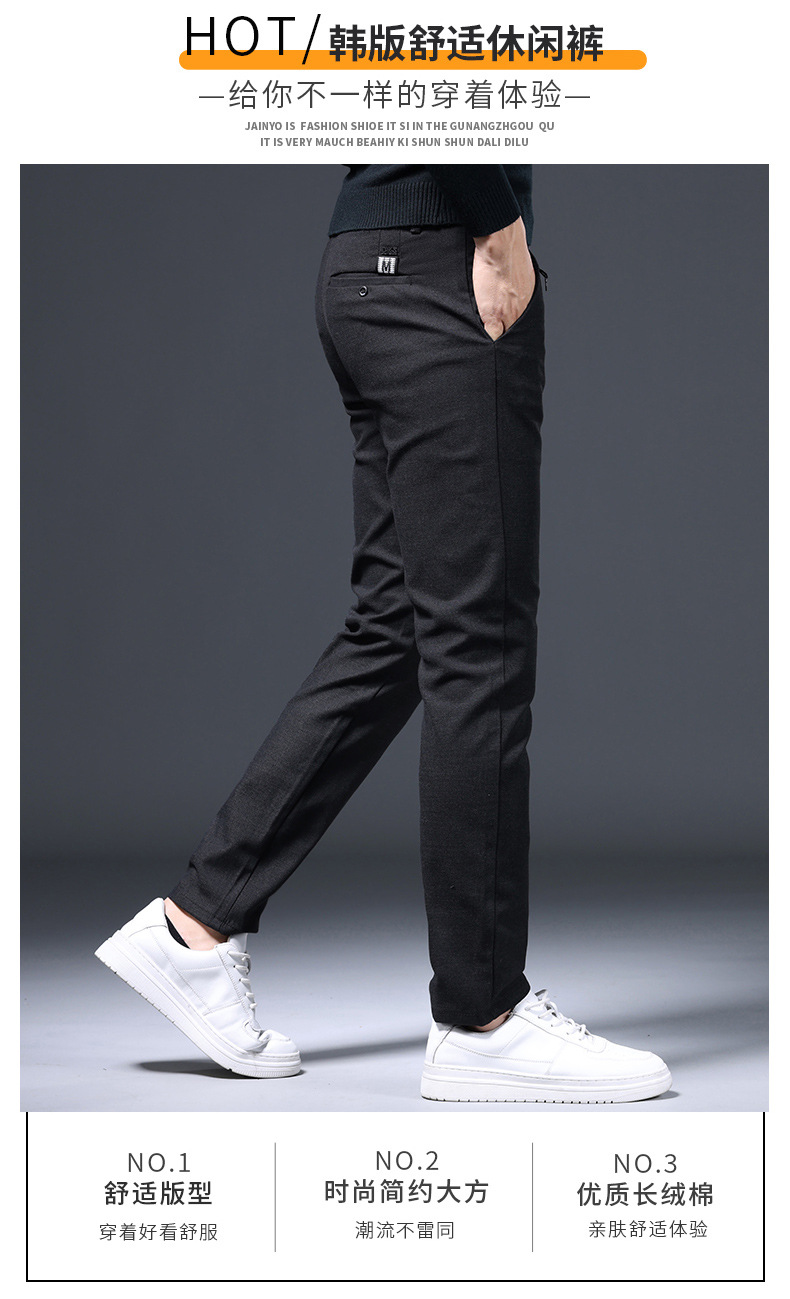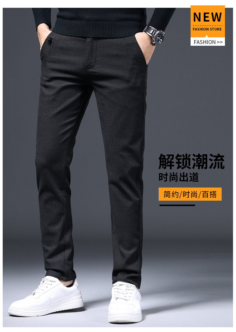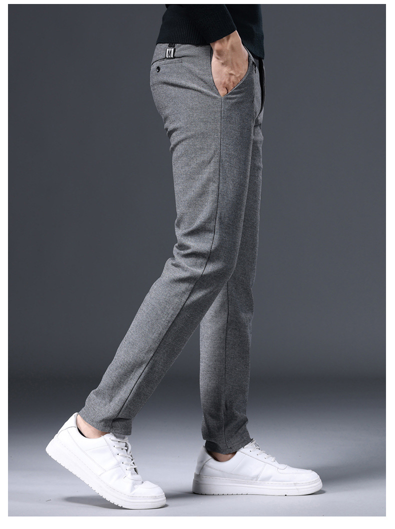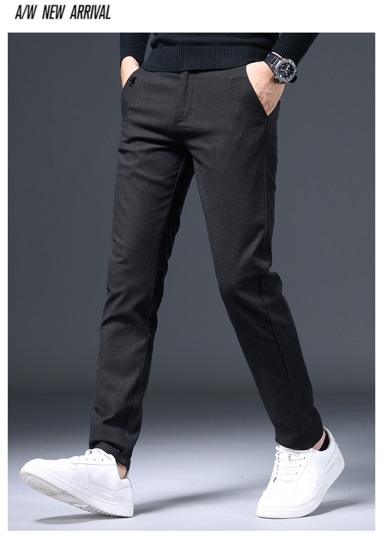 간단한 패션 남성용 바지 편안한 가벼운 비즈니스 바지 남성용 긴 스테이플 코튼 스트레치 슬림 핏 스트레이트 캐주얼 바지