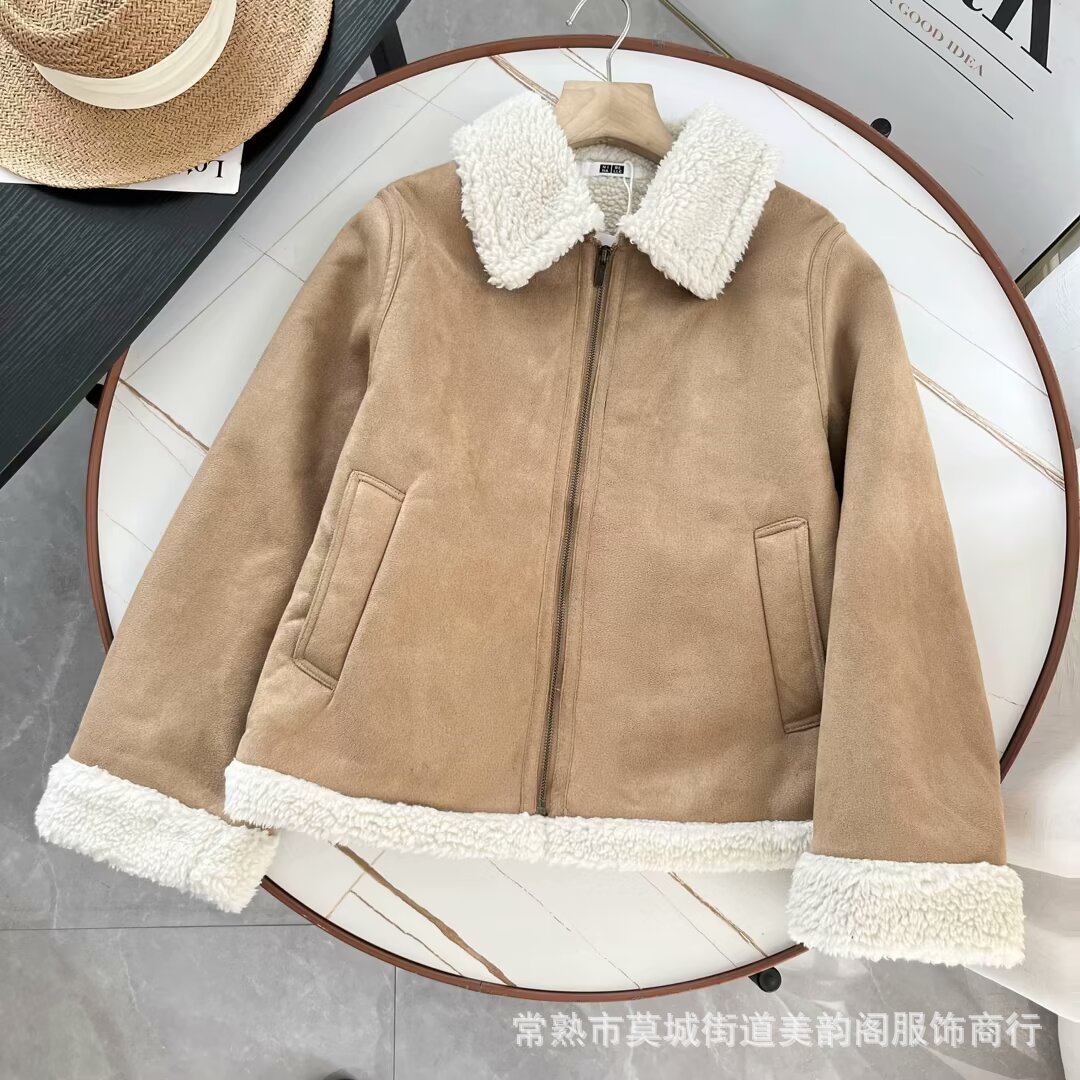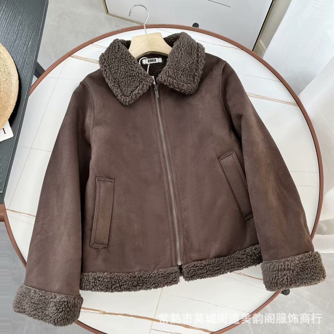 UC & ZA 2023 가을/겨울 새로운 여성 조커 느슨한 두꺼운 옷깃 오토바이 모피 원 재킷 460902스토어 가기