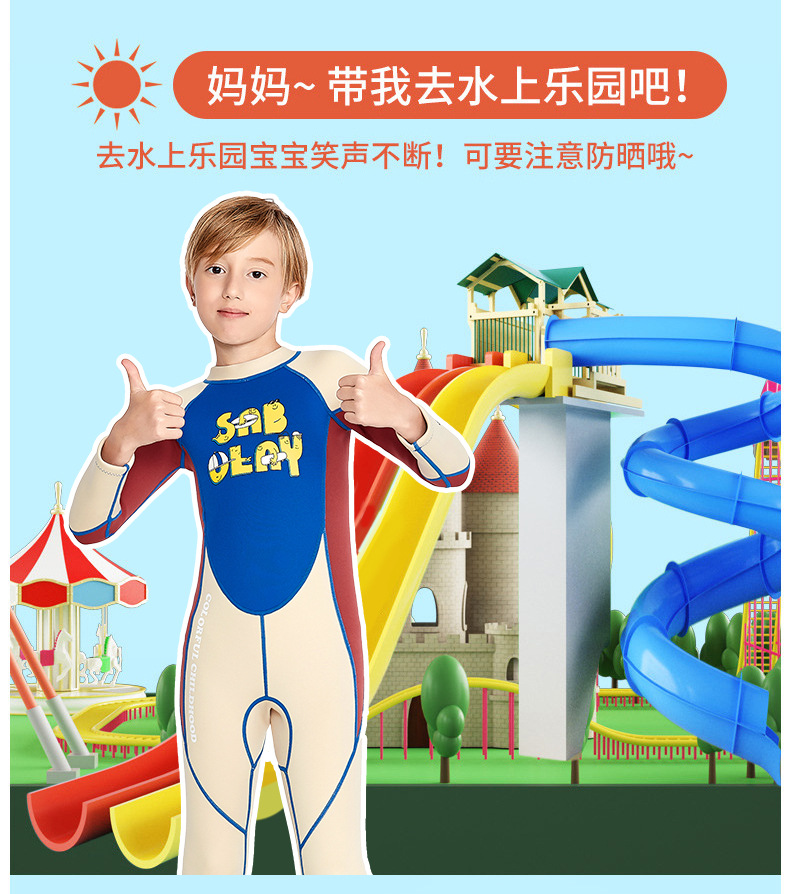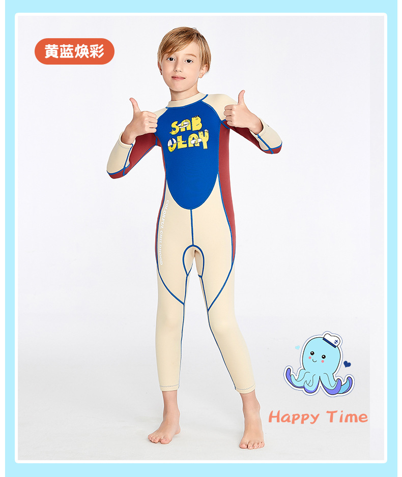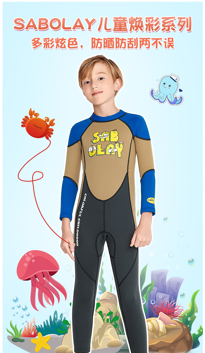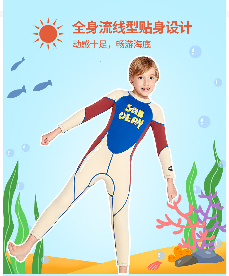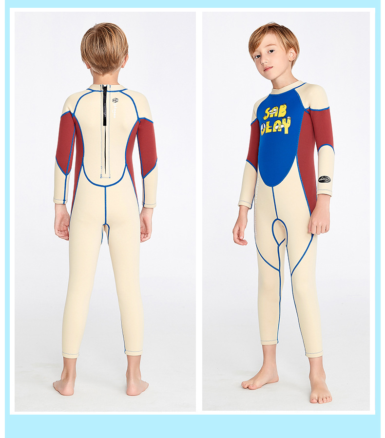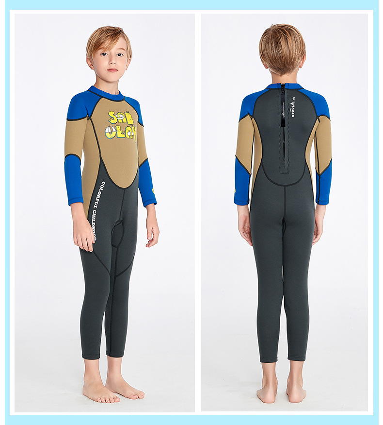 국경을 넘는 신형 아동용 보온 잠수복 2MM 두꺼운 긴팔 야외 일체형 수영복 자외선 차단 아동용 수영복