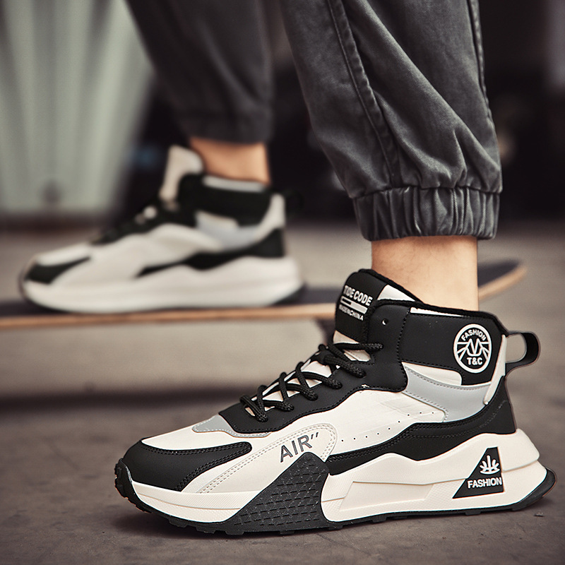 하이탑 신발 겨울 뉴 기모 따뜻한면 패딩 신발 남성용 두꺼운 밑창 미드 탑 아빠 신발 부드러운 밑창 캐주얼 스포츠 패션 신발스토어 가기