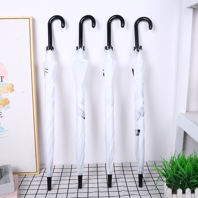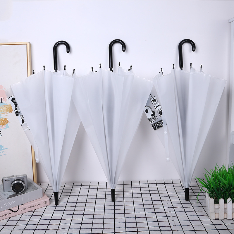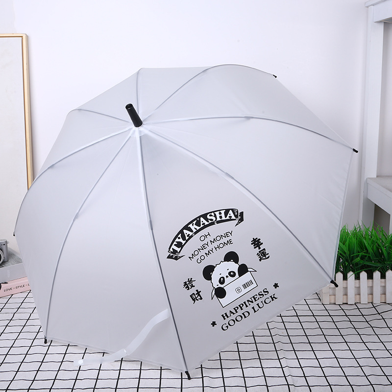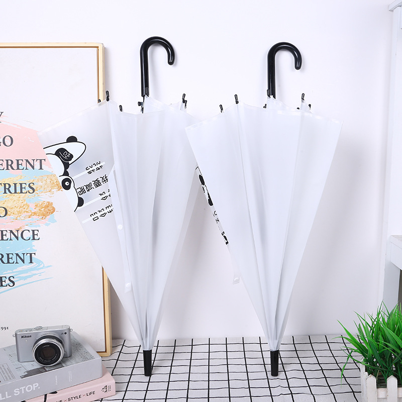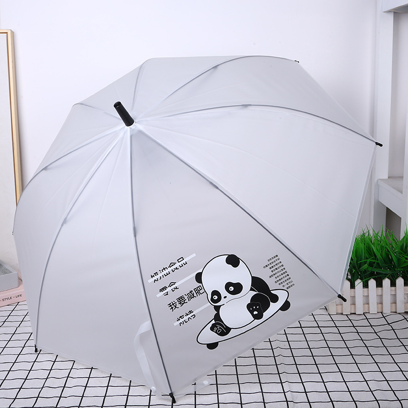 만화 팬더 인쇄 서리 우산 도매 플라스틱 긴 핸들 자동 맑은 우산 로고 어린이 광고 선물 우산