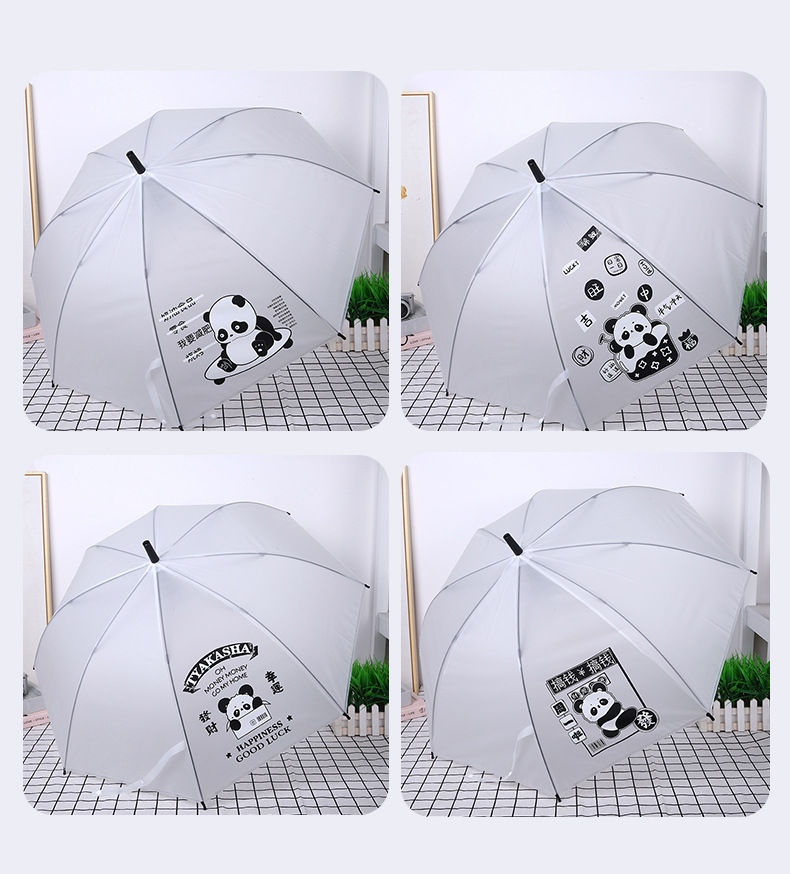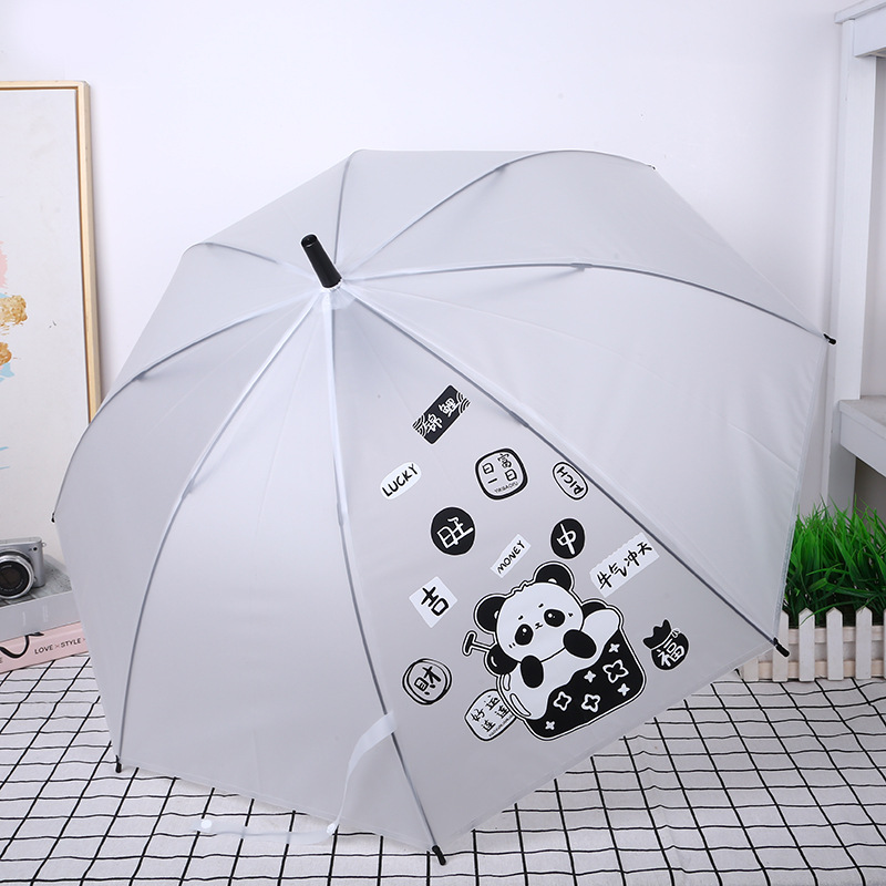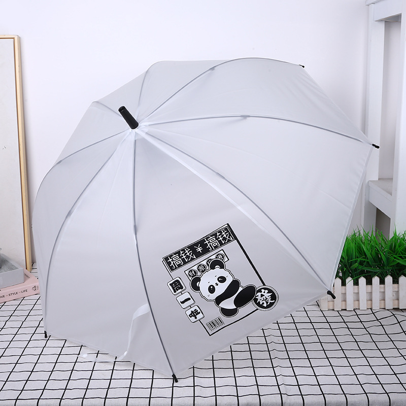 만화 팬더 인쇄 서리 우산 도매 플라스틱 긴 핸들 자동 맑은 우산 로고 어린이 광고 선물 우산스토어 가기