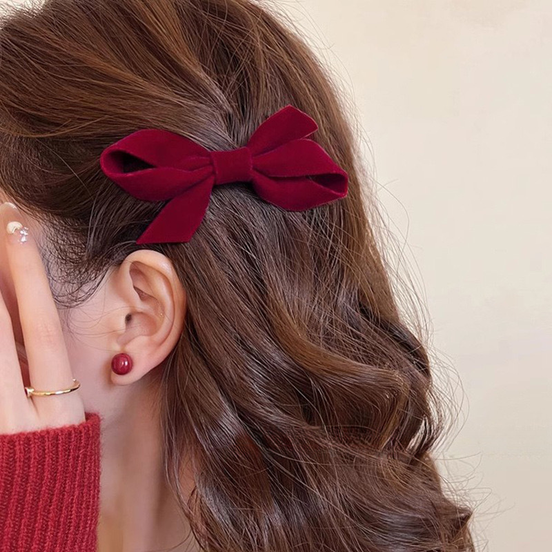 빨간 새해 헤어 액세서리 나비 머리핀 머리 장식 귀여운 앞머리 클립 여성 이마 사이드 클립 2024 새로운 겨울스토어 가기