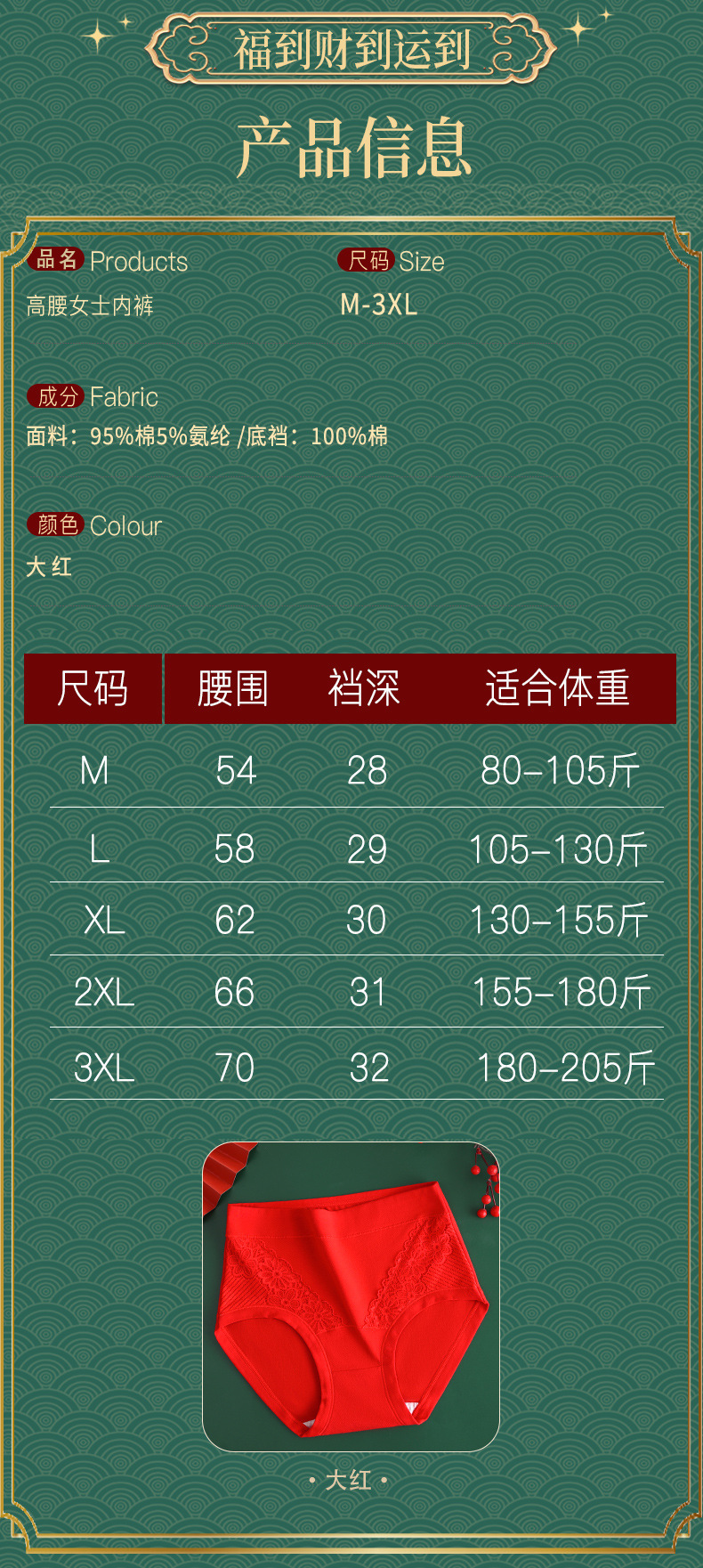 출생 년 붉은 여성 속옷 순수한면 항균 높은 허리 배 계약 플러스 사이즈 삼각형 속옷 여성의 결혼식 행운의 반바지
