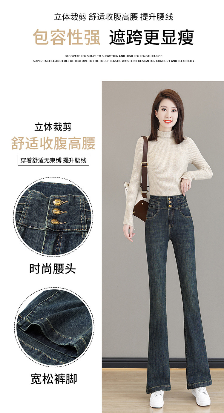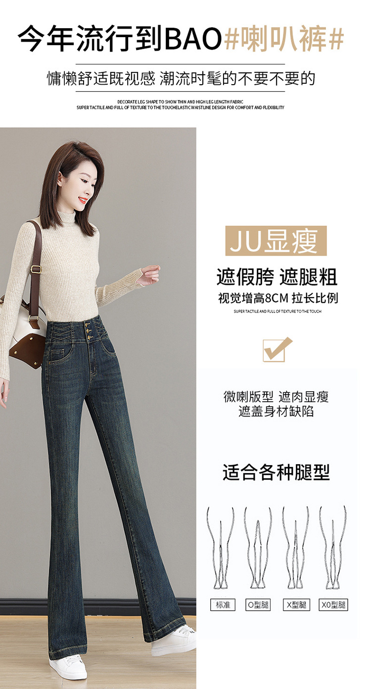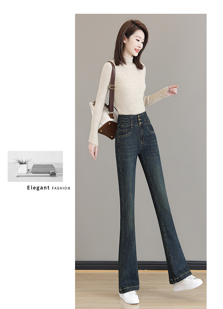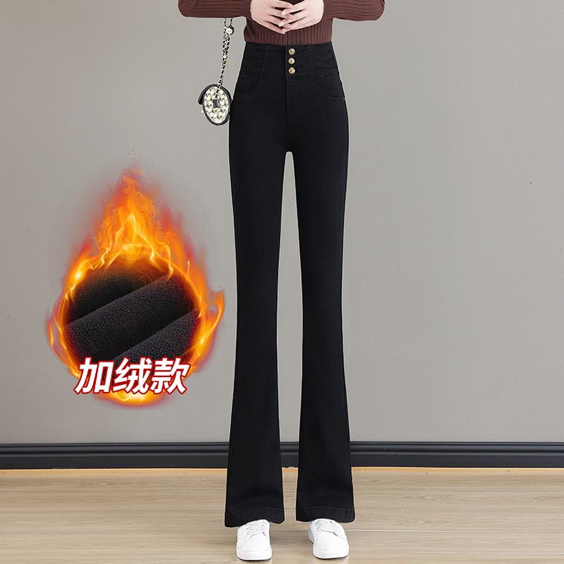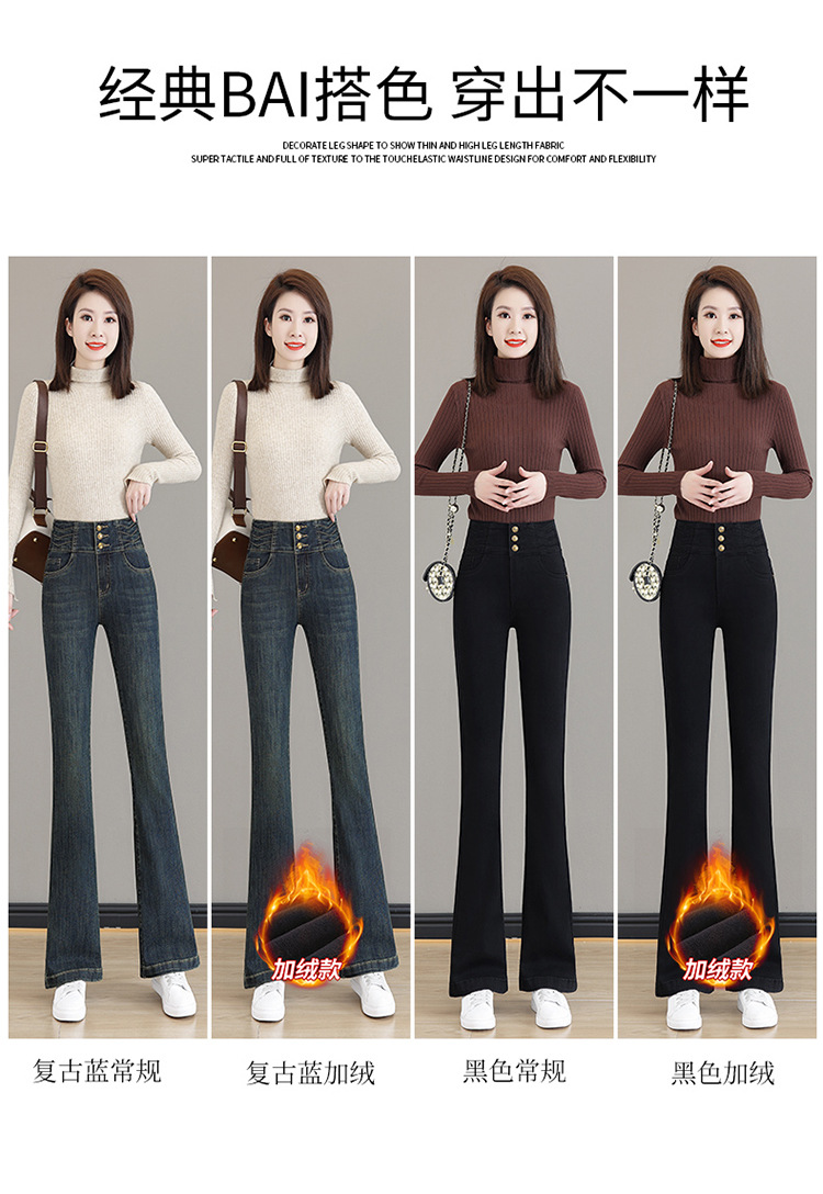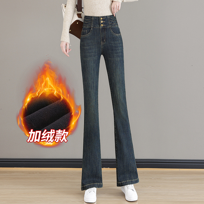 가을 겨울 여성용 데님 부츠컷 팬츠, 두껍고 벨벳, 2024년 신상 하이웨이스트 슬리밍 스트레치 플레어 팬츠, 여성용스토어 가기