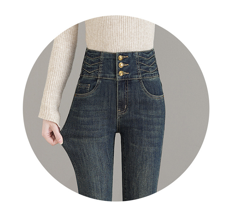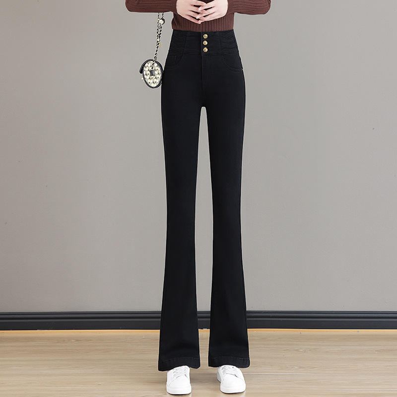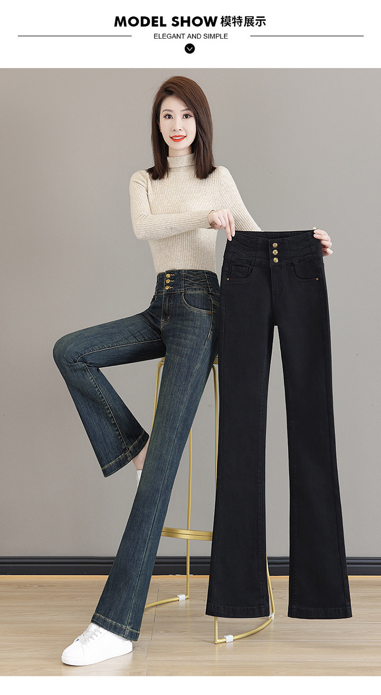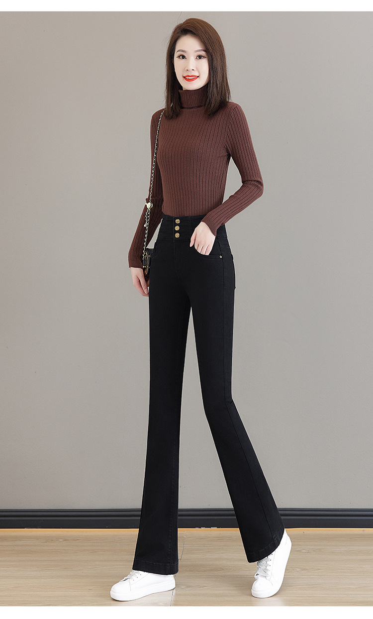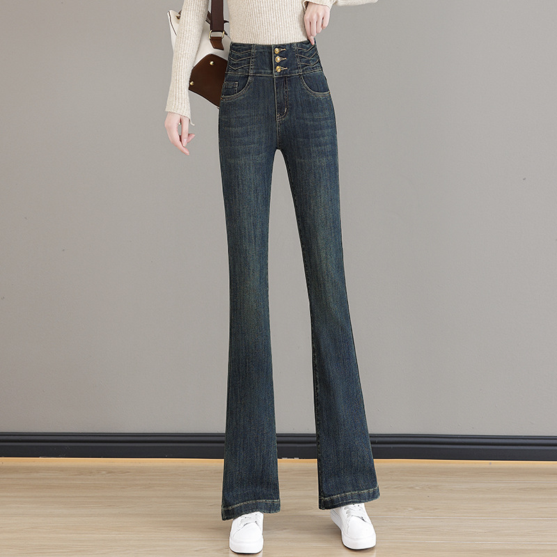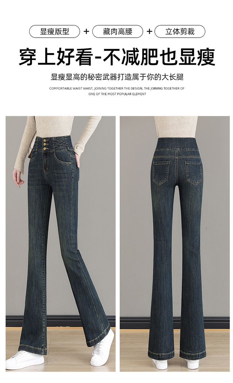 가을 겨울 여성용 데님 부츠컷 팬츠, 두껍고 벨벳, 2024년 신상 하이웨이스트 슬리밍 스트레치 플레어 팬츠, 여성용스토어 가기