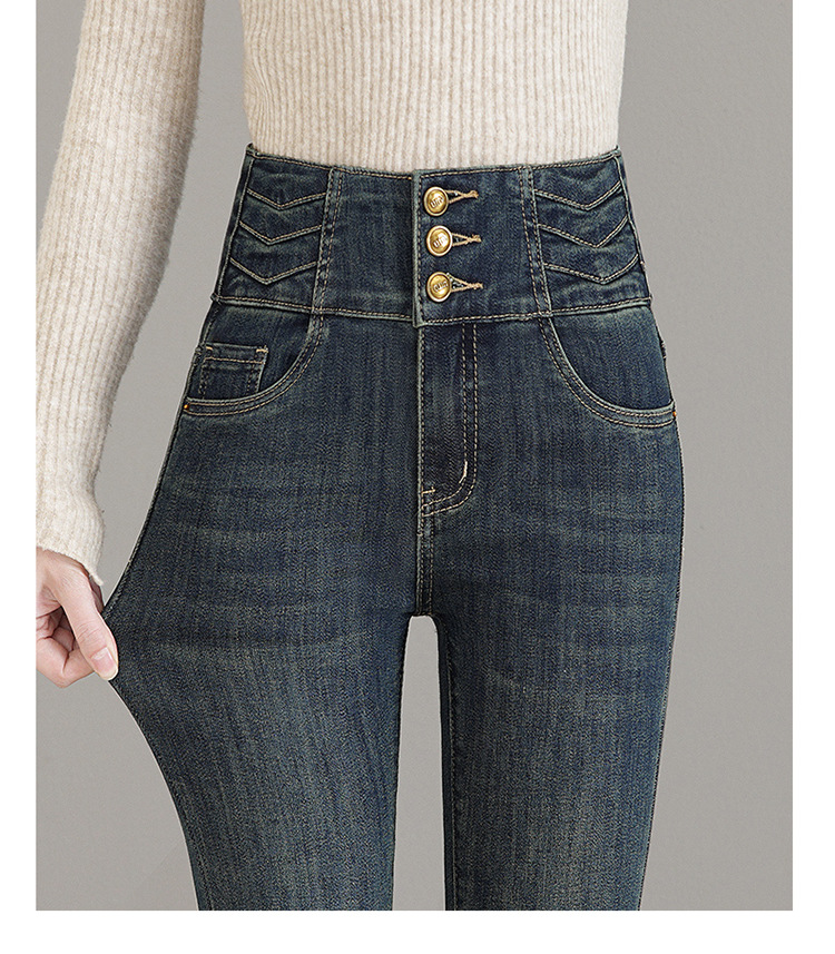 가을 겨울 여성용 데님 부츠컷 팬츠, 두껍고 벨벳, 2024년 신상 하이웨이스트 슬리밍 스트레치 플레어 팬츠, 여성용