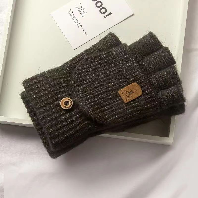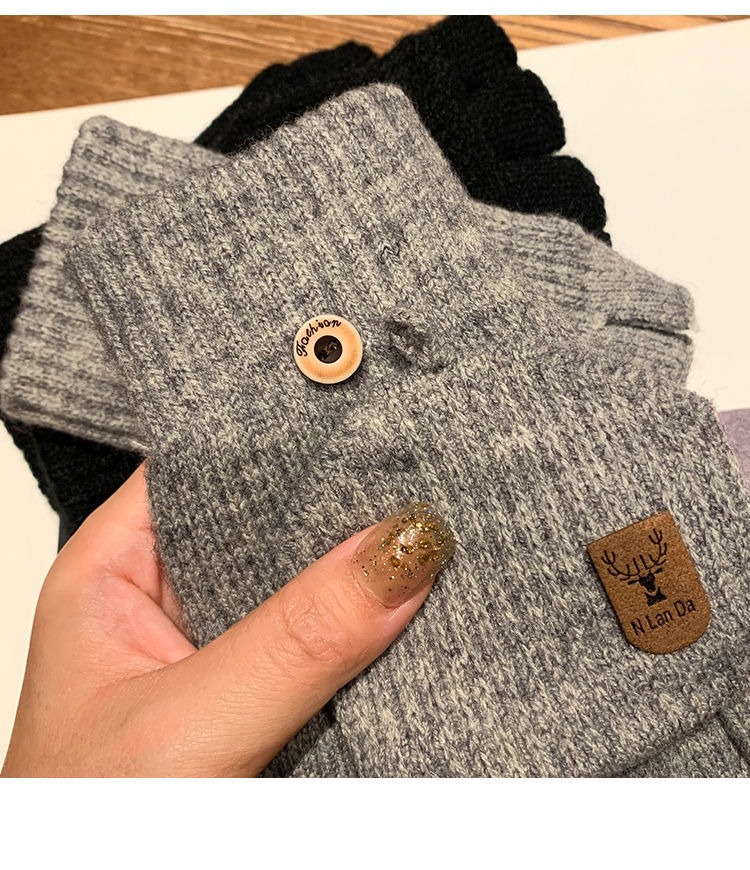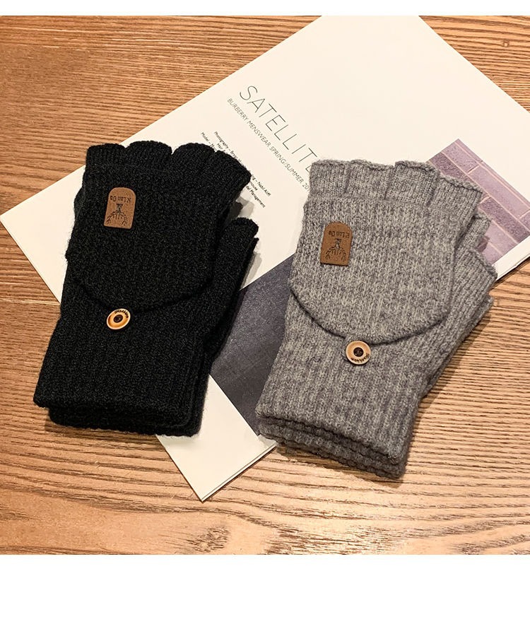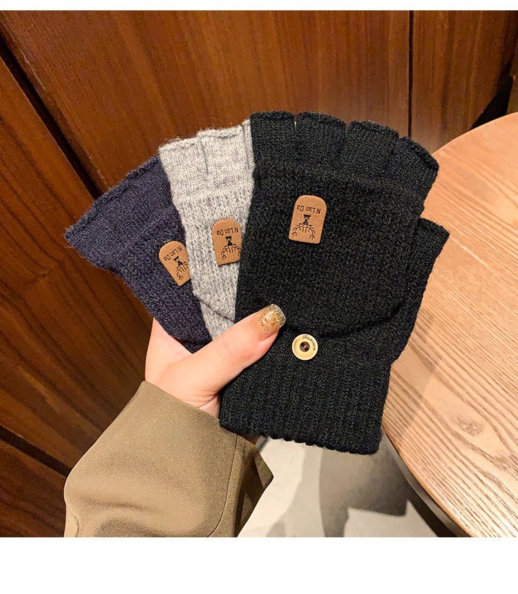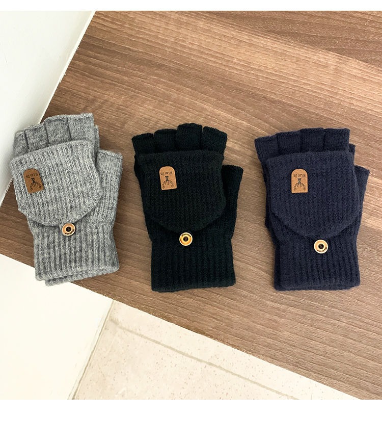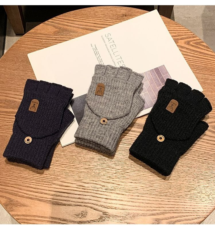 따뜻하고 방한 장갑, 겨울 니트 사이클링 장갑, 남성용 및 여성용 분할 손가락 플립 커버, 플러시 플러스 두꺼운 보호 장치스토어 가기
