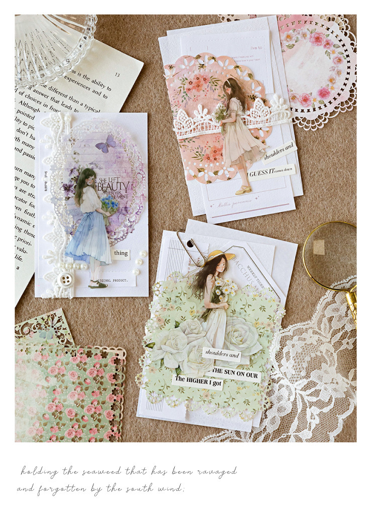 모모 소재 종이 빅토리아 시크릿 시리즈 빈티지 꽃 속이 빈 레이스 저널 배경 장식 종이스토어 가기
