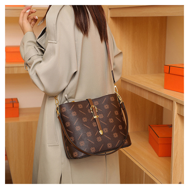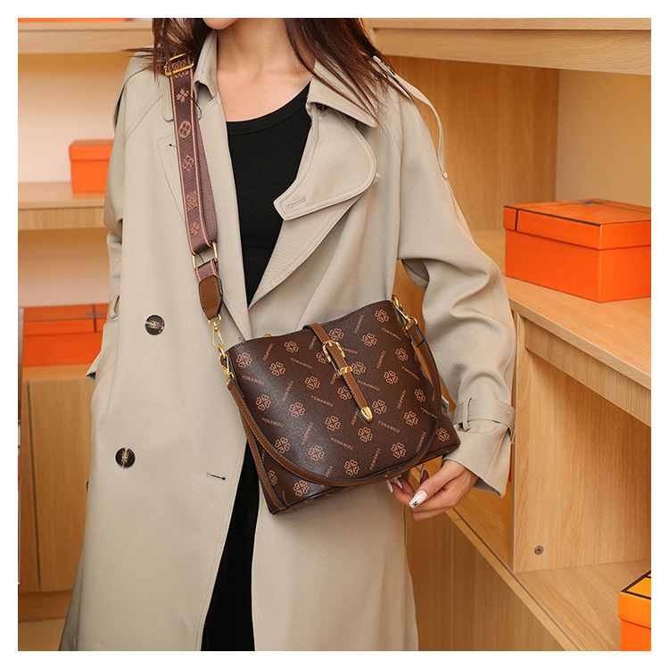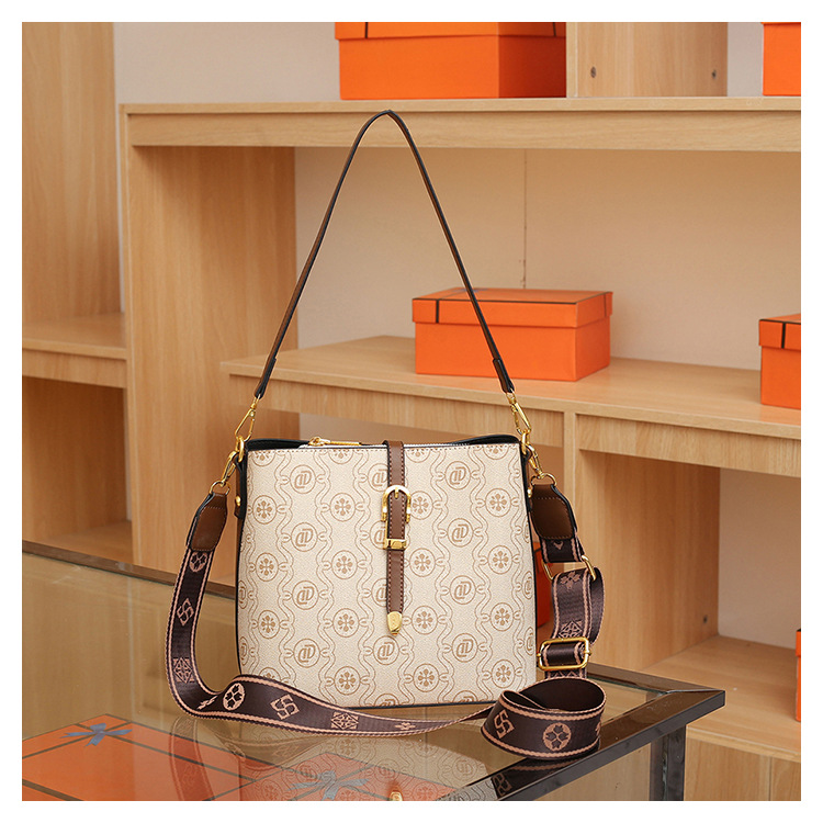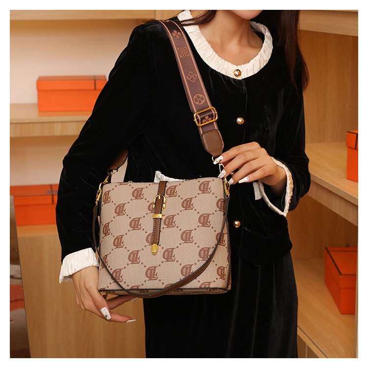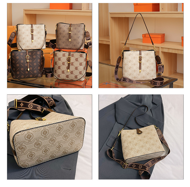 라이브 핫 버킷 여성용 가방 2023 겨울 새로운 고급 인쇄 숄더백 레트로 올 매치 패션 메신저 백