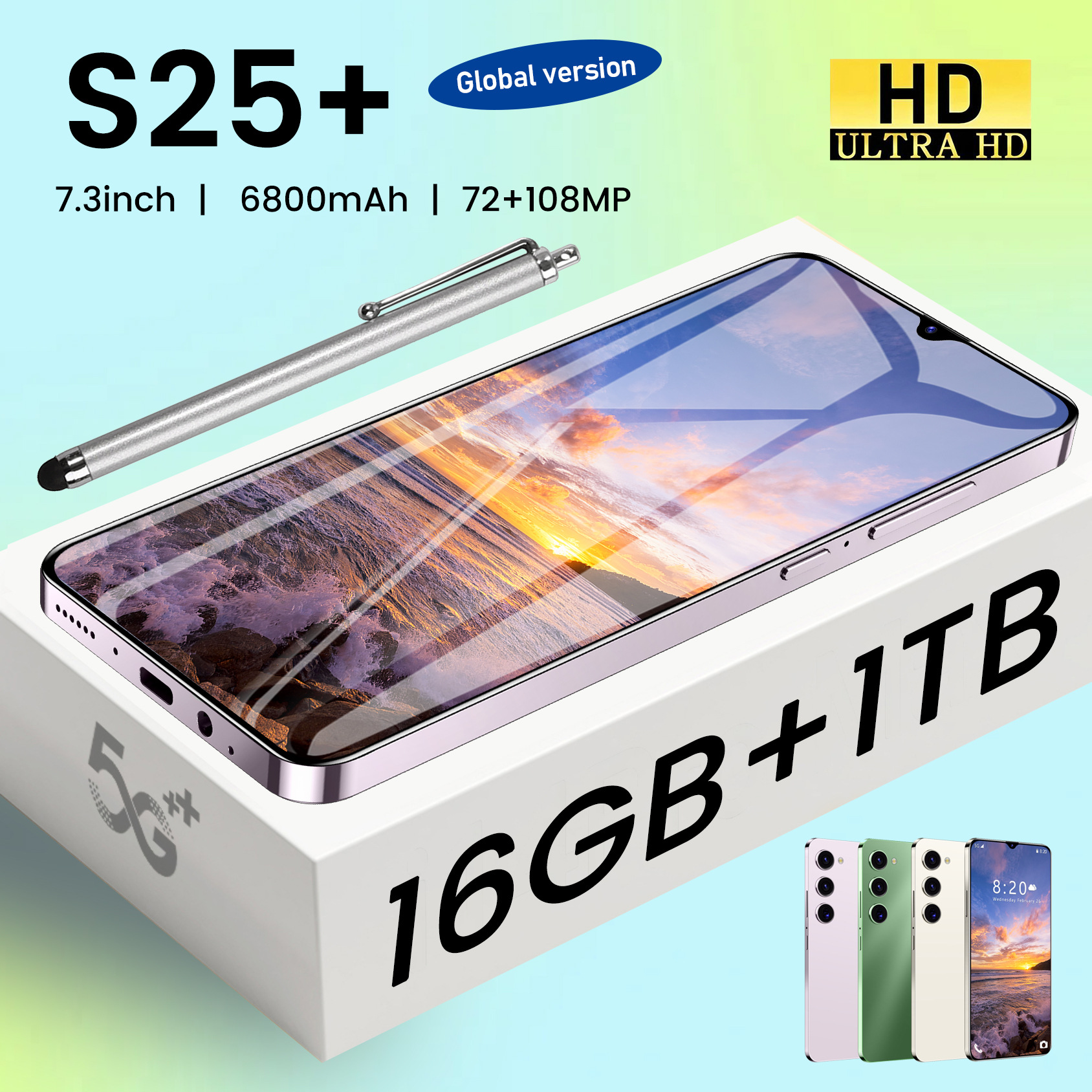 새로운 국경 간 휴대 전화 S25+ 대형 스크린 7.3inch 안드로이드 13 대외 무역 핫 판매 공장 도매 스마트 폰