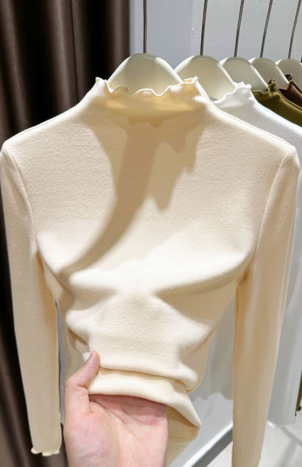 2024년 가을 겨울용 기모 데론 하프 터틀넥 여성용 보온 이너웨어, 러플 긴팔 상의, 한국 스타일 캐주얼스토어 가기