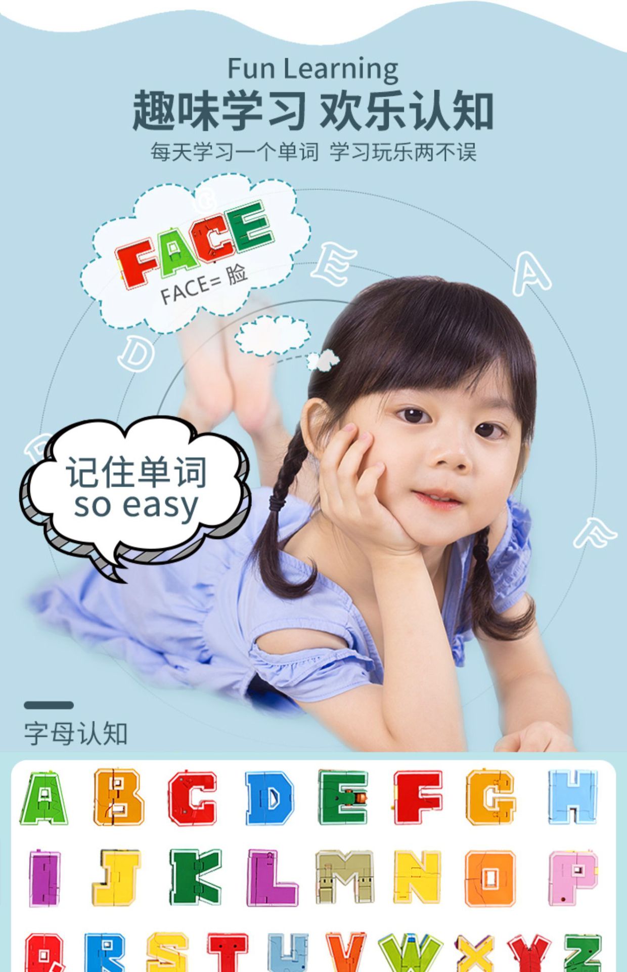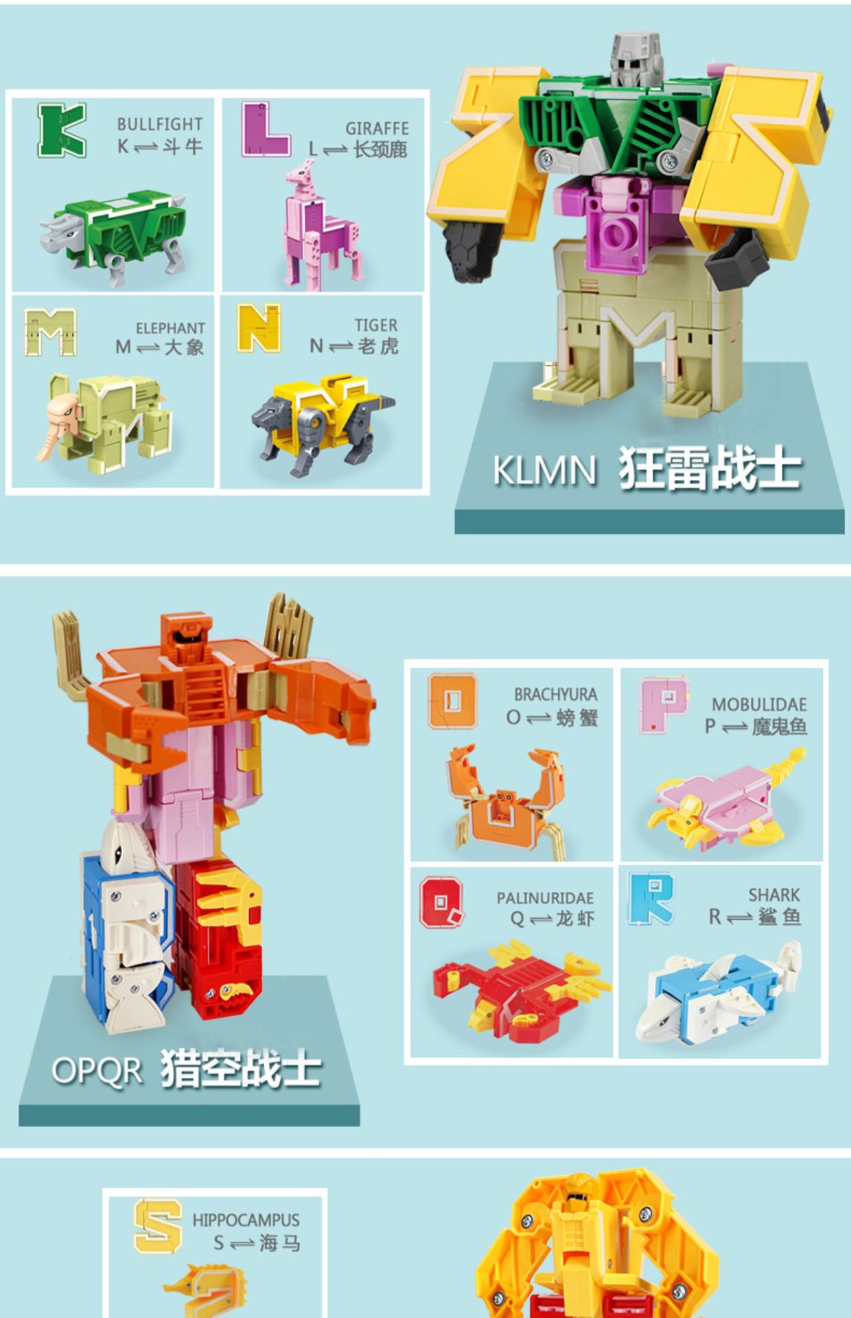 알파벳 로봇 변형 어린이 장난감 도매 오토봇 문자 적합 킹콩 조립 소년 교육 장난감스토어 가기