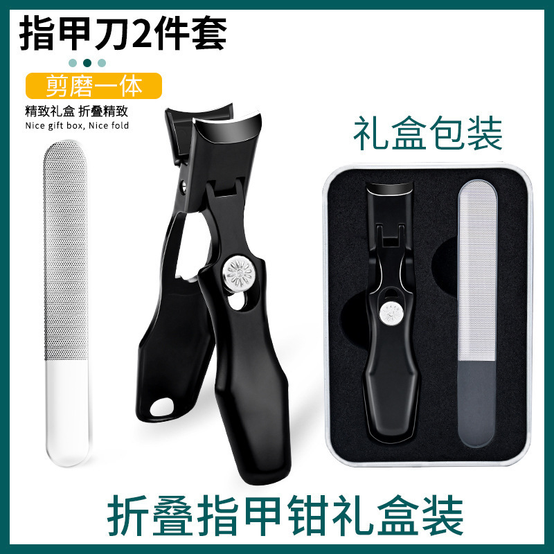 • 철 상자 큰 오프닝 블랙 파우더 스틸 네일 클리퍼 + 라운드 헤드 유리 파일