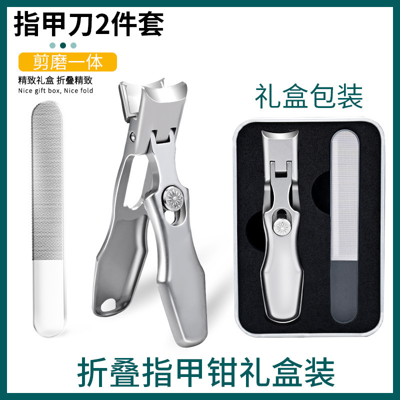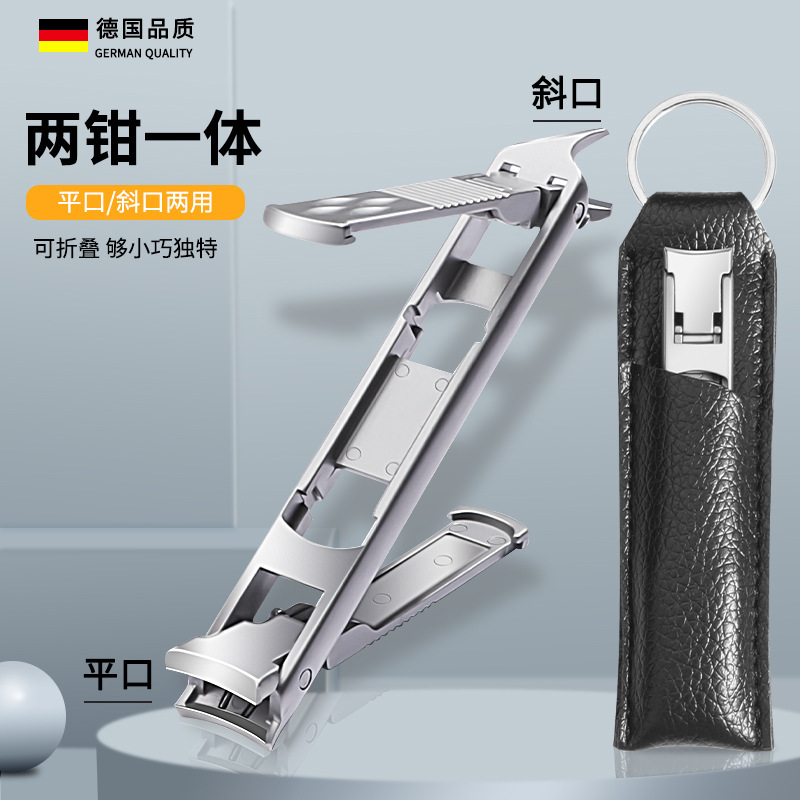 더블 헤드 네일 클리퍼 네일 클리퍼 안티 스플래시 대형 오프닝 접이식 가죽 케이스 철 박스 도매 스테인레스 스틸 공장 재고스토어 가기