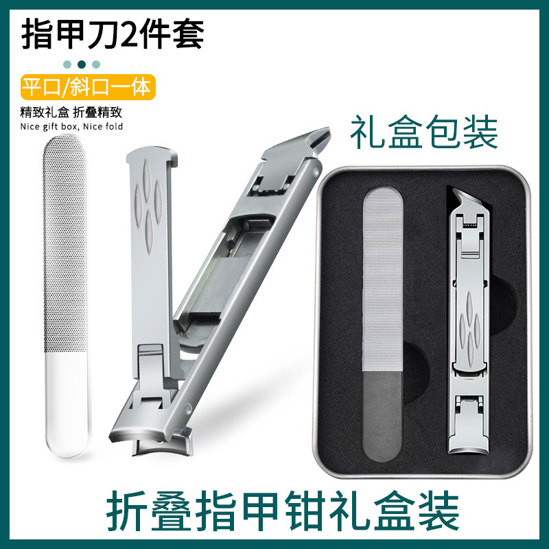 • 철 상자 대형 오프닝 실버 파우더 스틸 네일 클리퍼 + 라운드 헤드 유리 파일