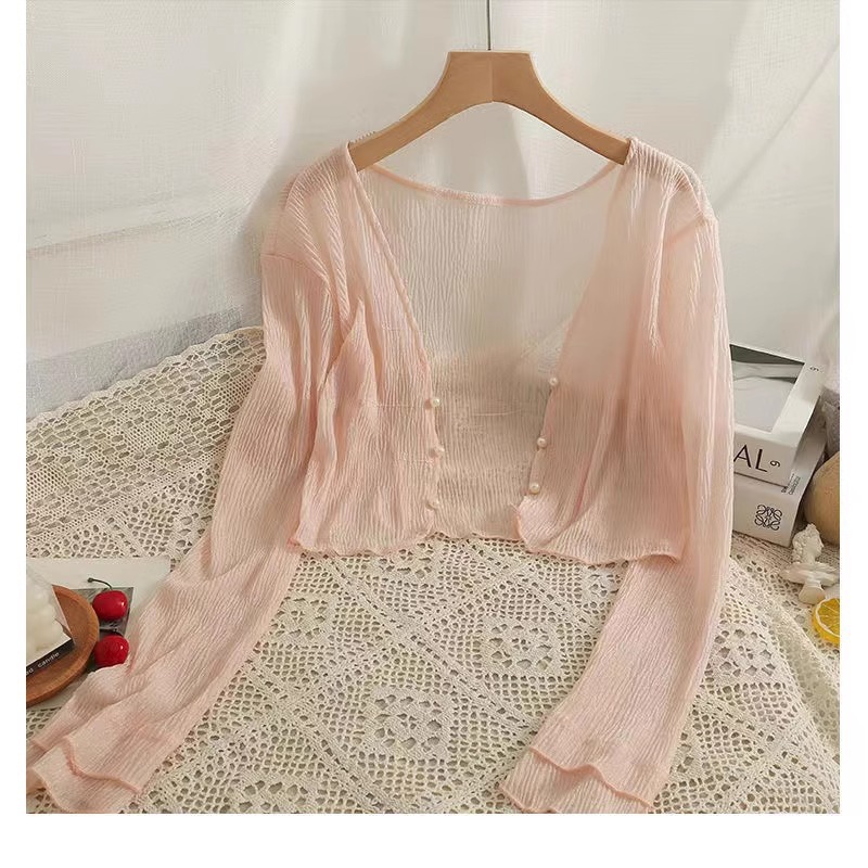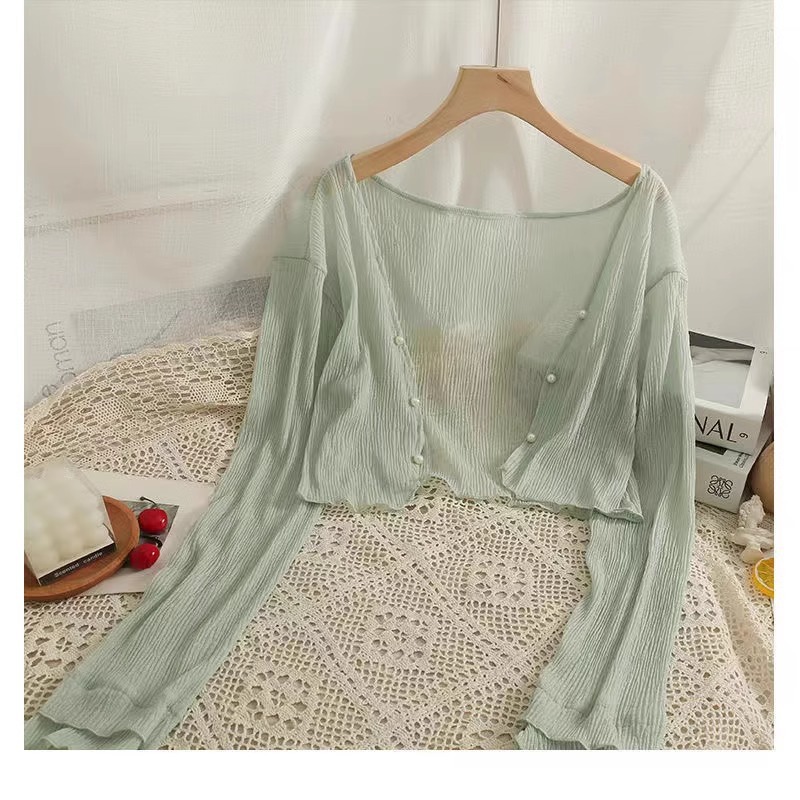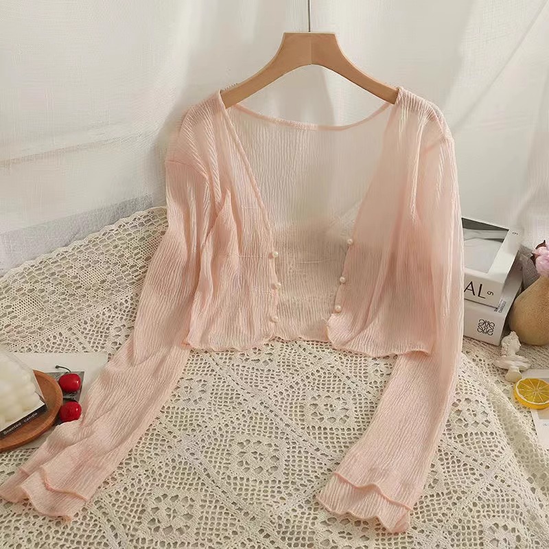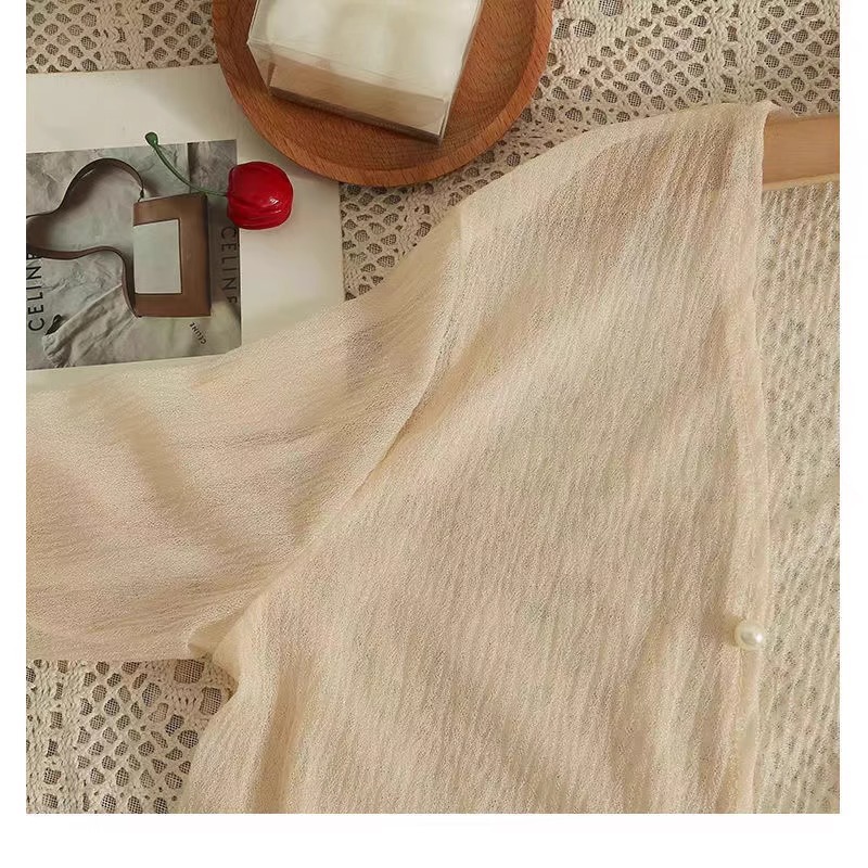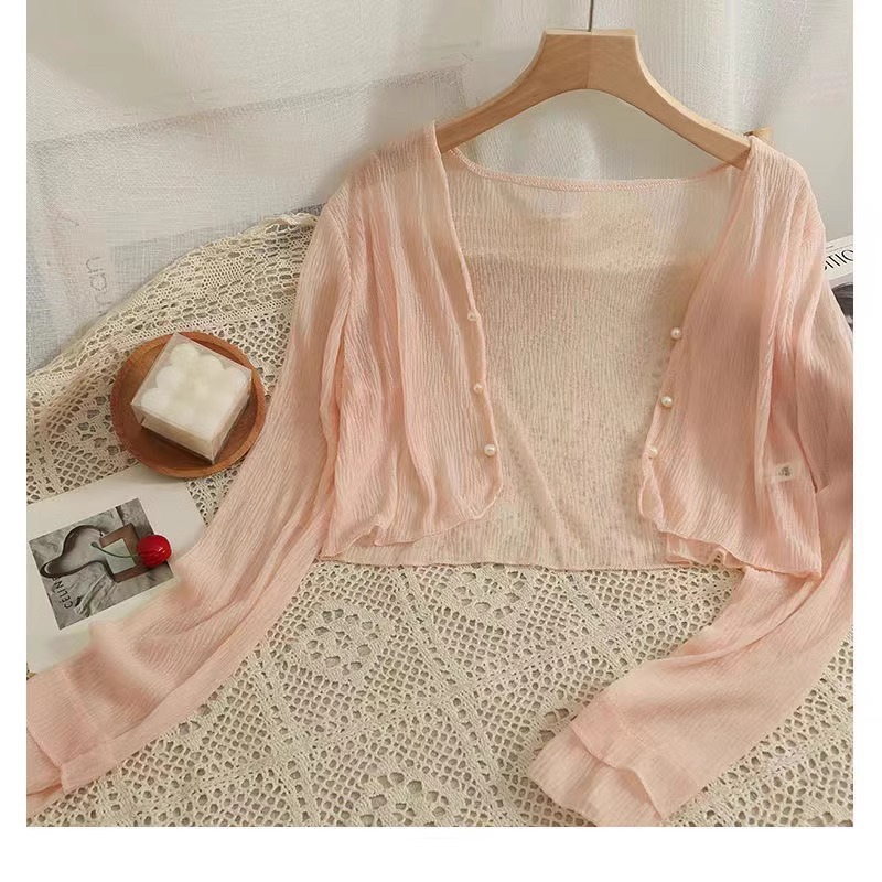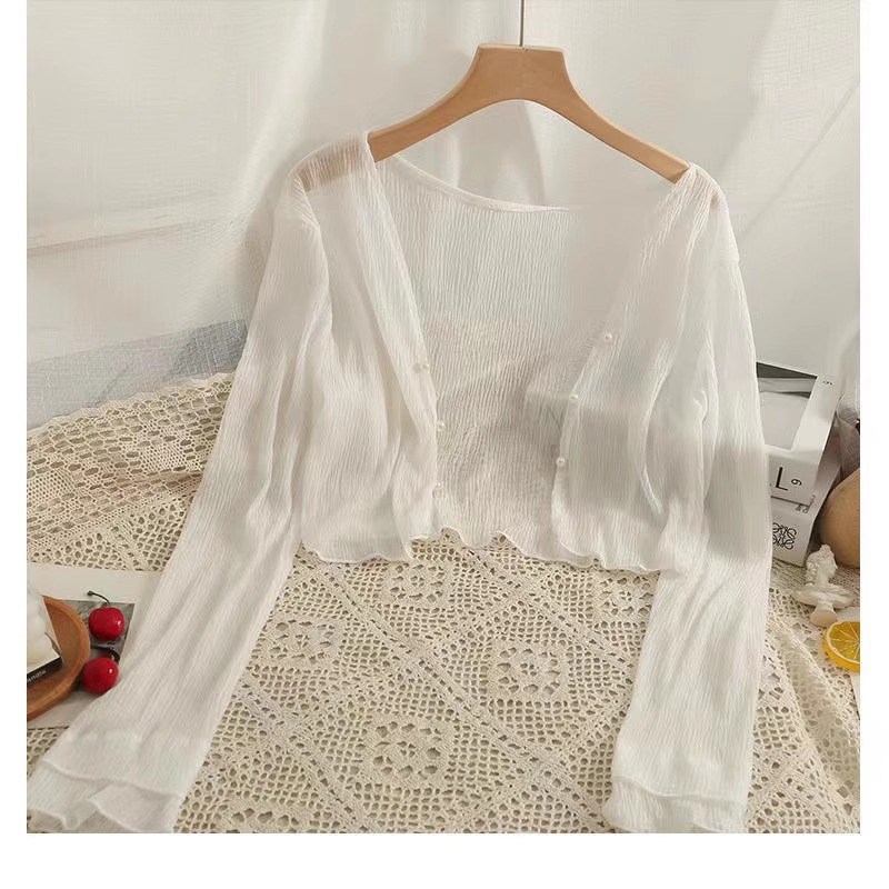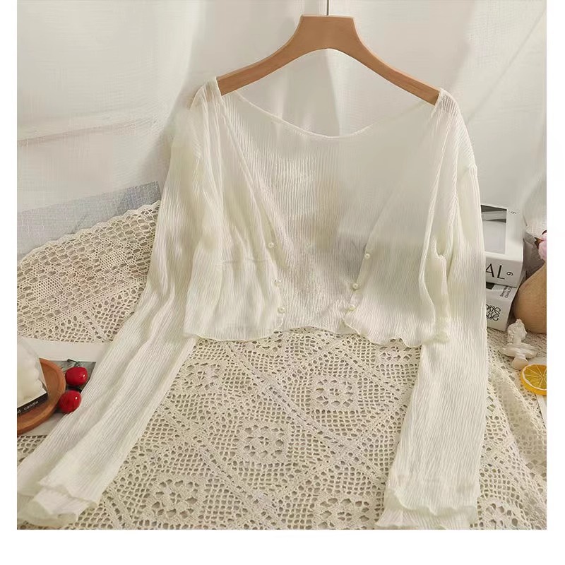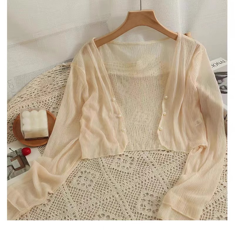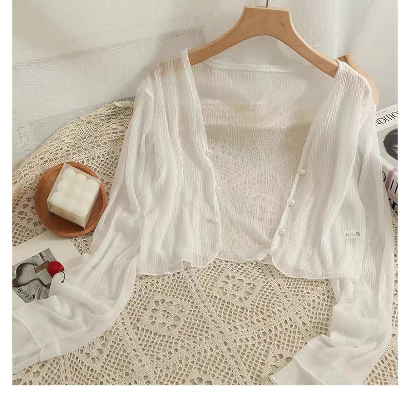 선스크린 카디건 여자 여름 얇은 작은 목도리, 슬립 스커트 아우터 쇼트 재킷 올매치 서양식 쉬폰 탑