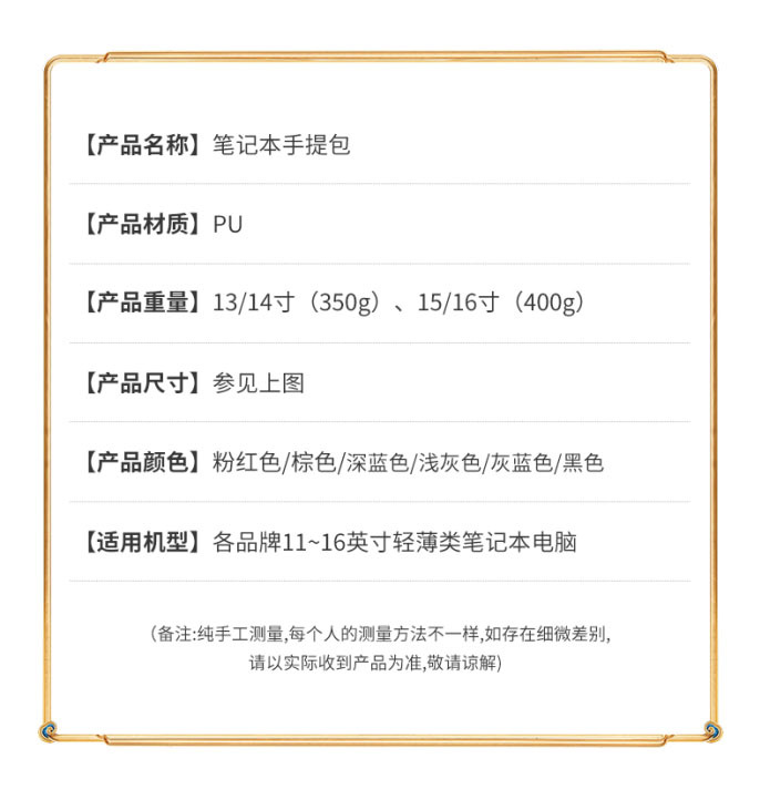 【产品规格】13/14寸=32.5CM*25.5CM,重350g
