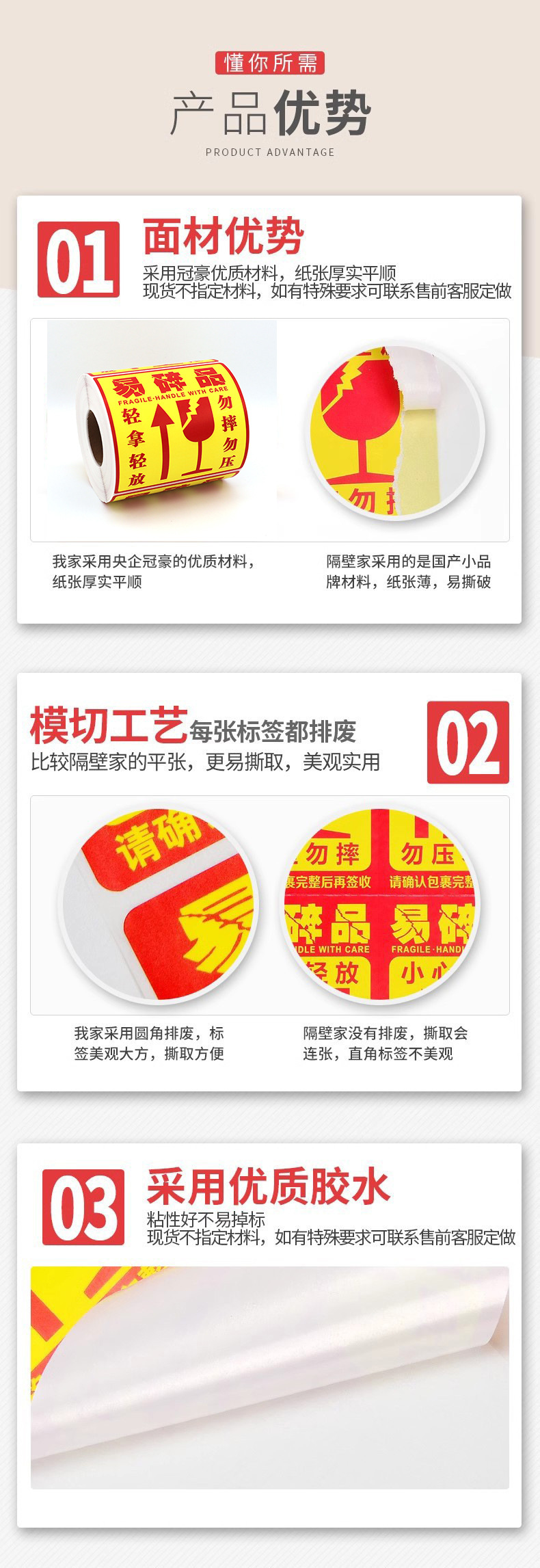깨지기 쉬운 라벨 스티커, 부드럽게 항목을 넣어 조심하고, 누르지 말고, 경고하지 말고, 경고하고, 깨지기 쉬운 제품 라벨링 포장 상자