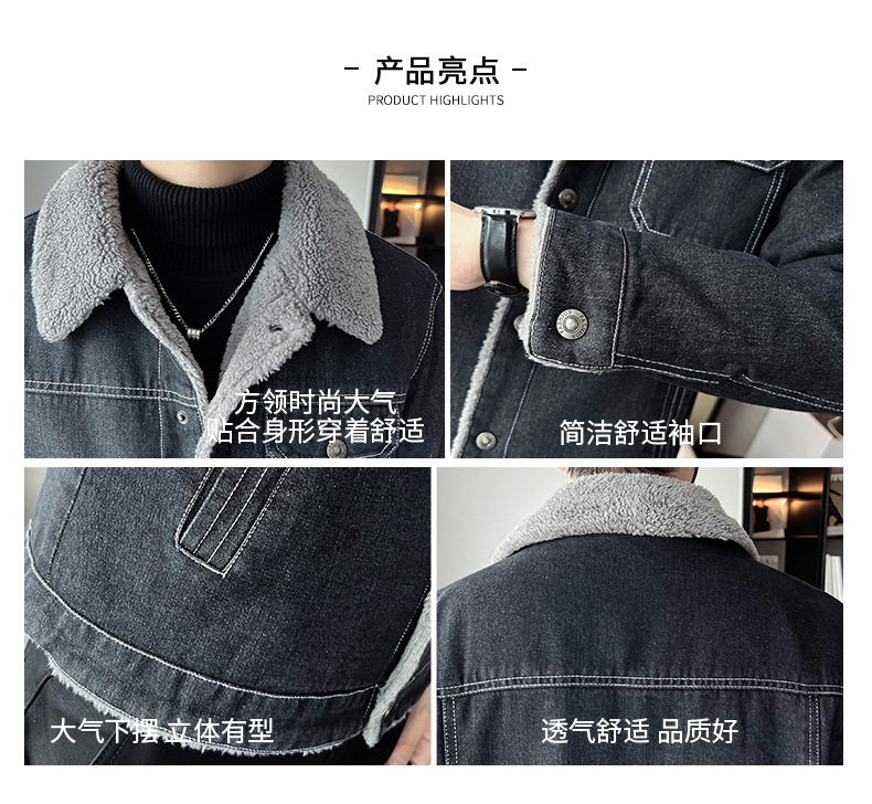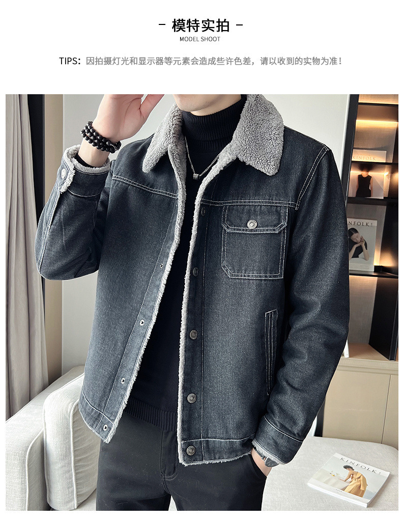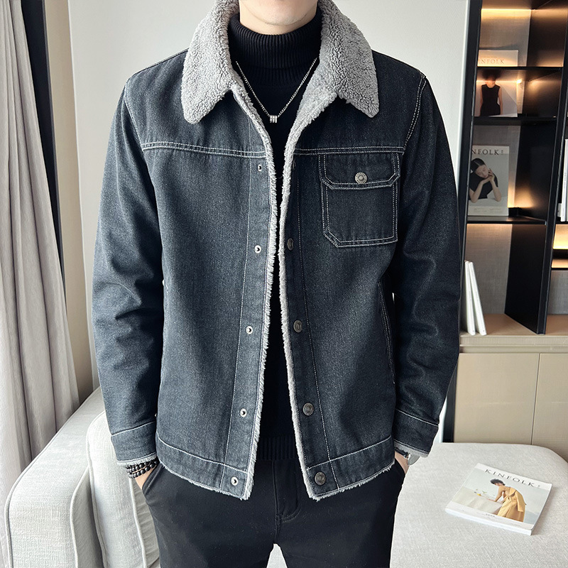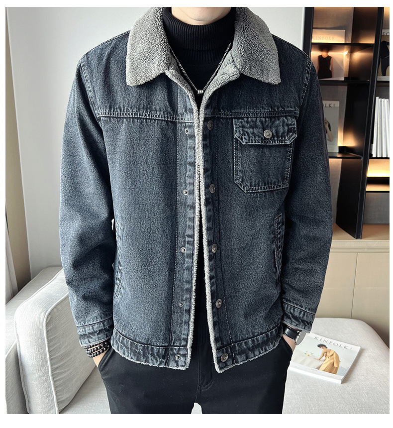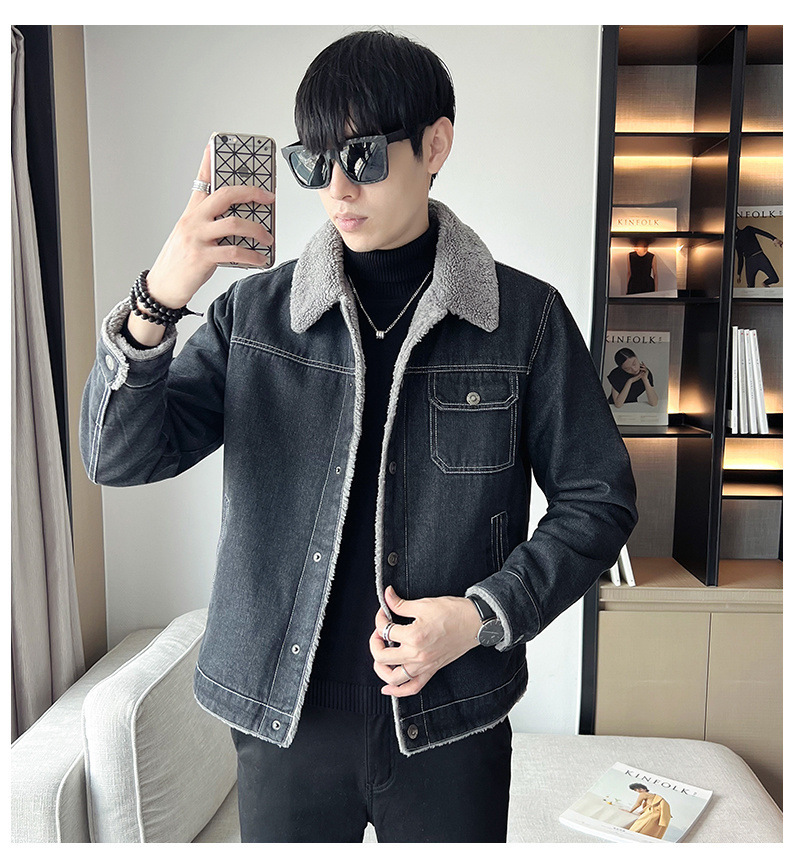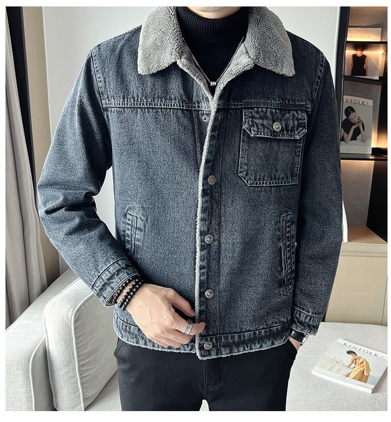새로운 데님 재킷 남성용 가을과 겨울 느슨한 코트 기모 두꺼운 옷깃 양모 따뜻한 재킷 트렌디 남성용 탑스토어 가기