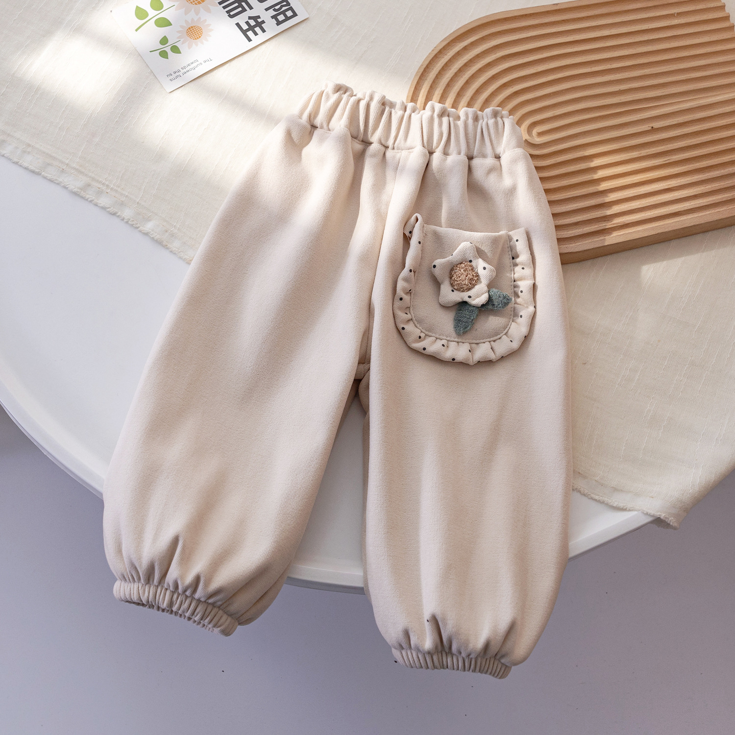 여자 겨울 기모 바지 한국 스타일 서양식 원피스 벨벳 자수 캐주얼 바지 아기 두껍게 바지 패션