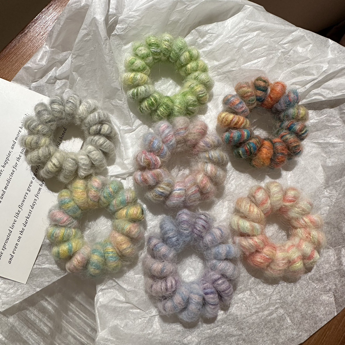 가을과 겨울 새로운 그라데이션 크림 혼합 컬러 울 전화 라인 헤어 링 원활한 넥타이 헤어 고무 밴드 넷 레드 헤드 로프 프렌치 로프스토어 가기