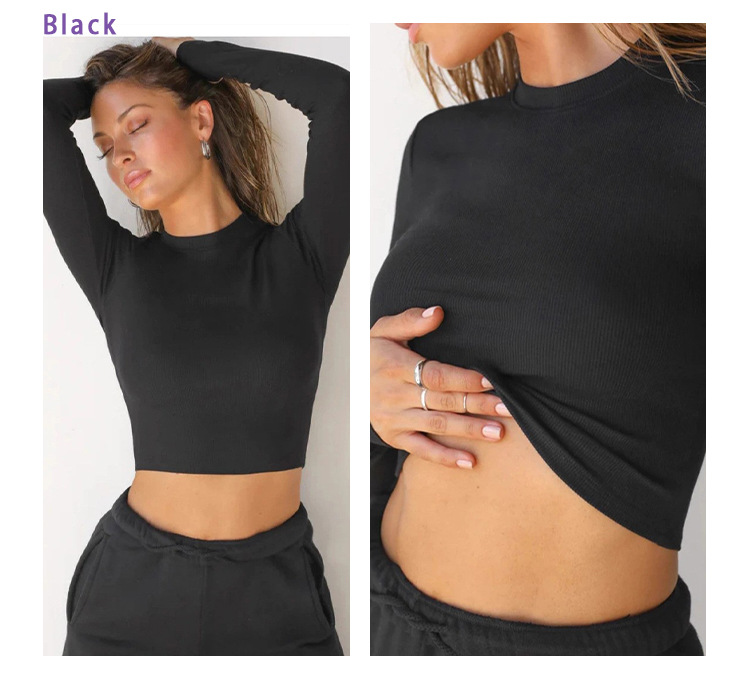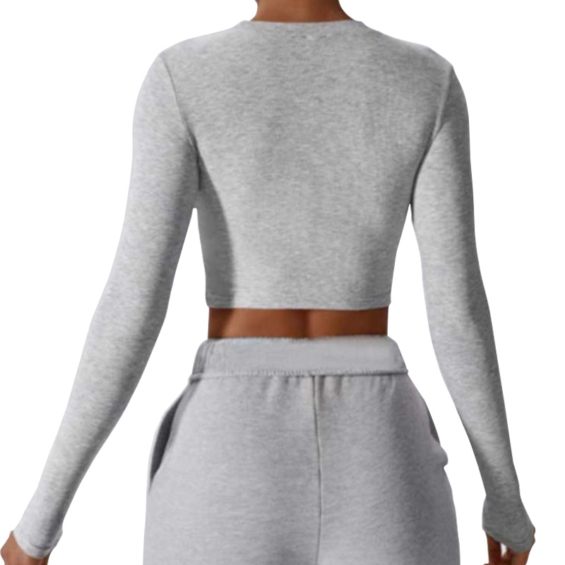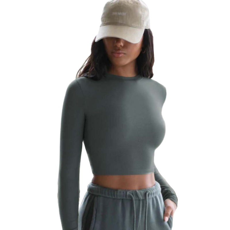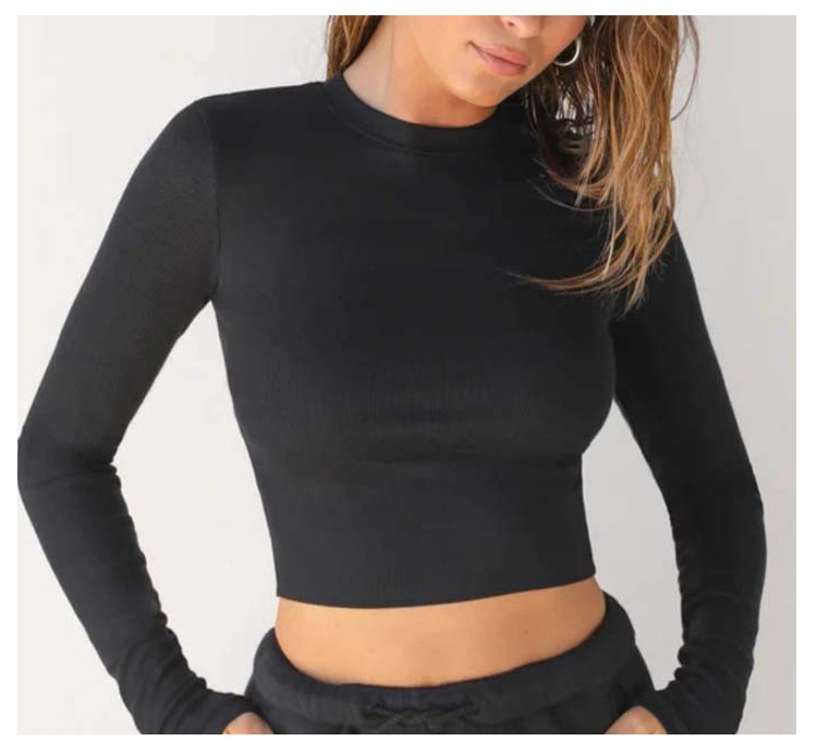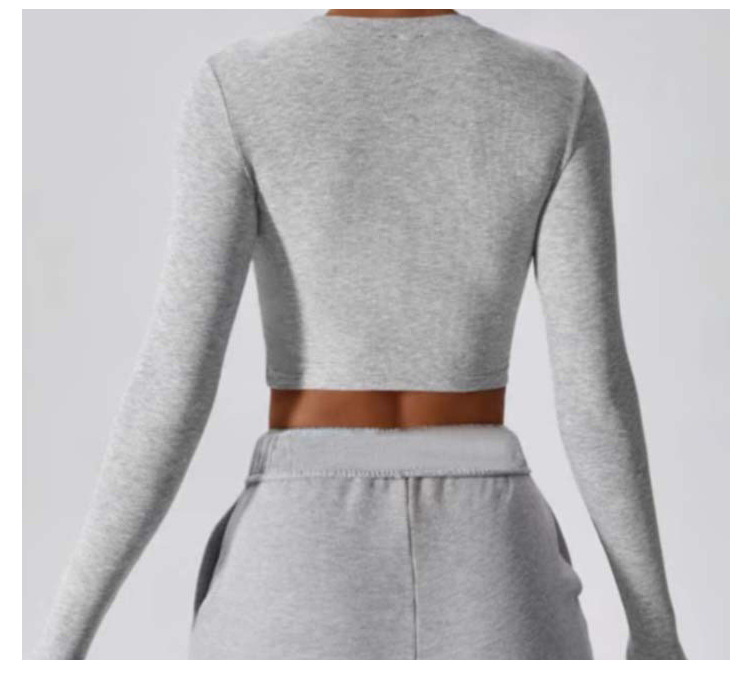 유럽 및 미국 겨울 신상품 골지 스포츠 요가복 긴팔 배를 가리는 크롭탑 피트니스 러닝 요가 탑 여성용