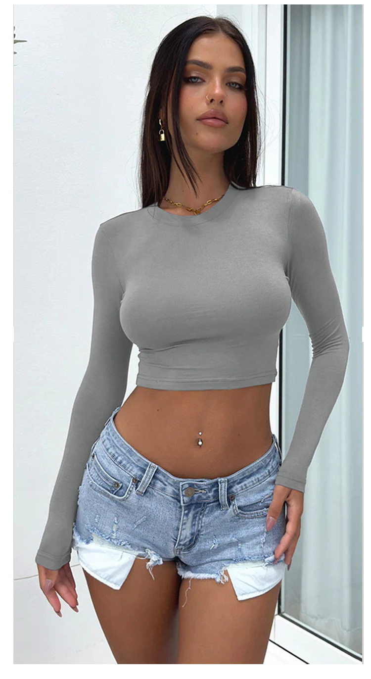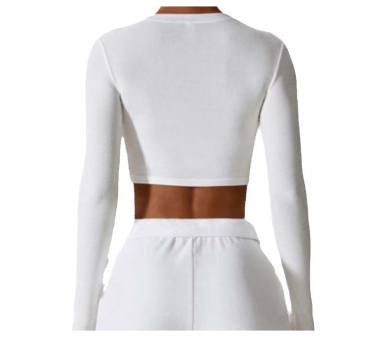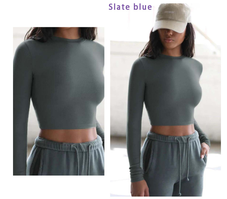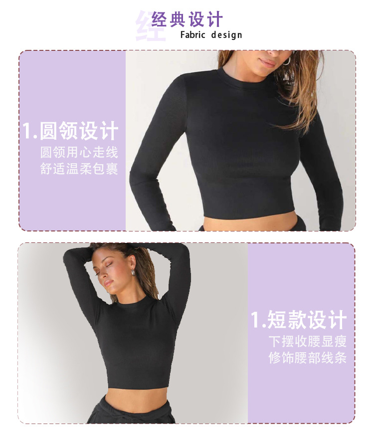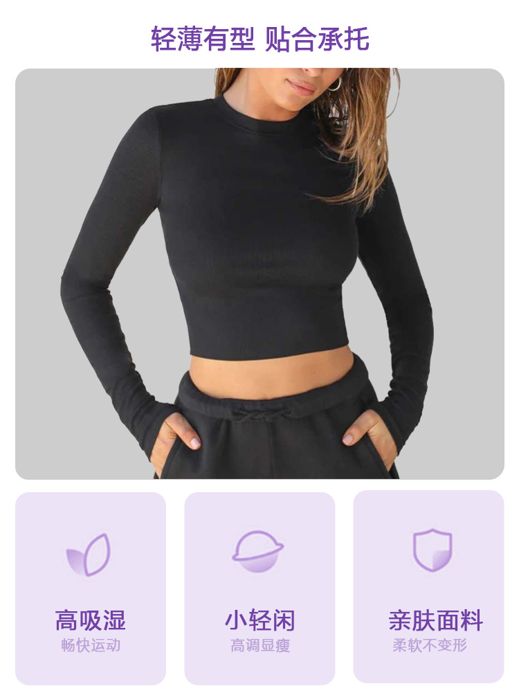 유럽 및 미국 겨울 신상품 골지 스포츠 요가복 긴팔 배를 가리는 크롭탑 피트니스 러닝 요가 탑 여성용