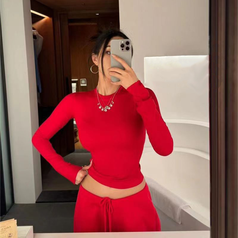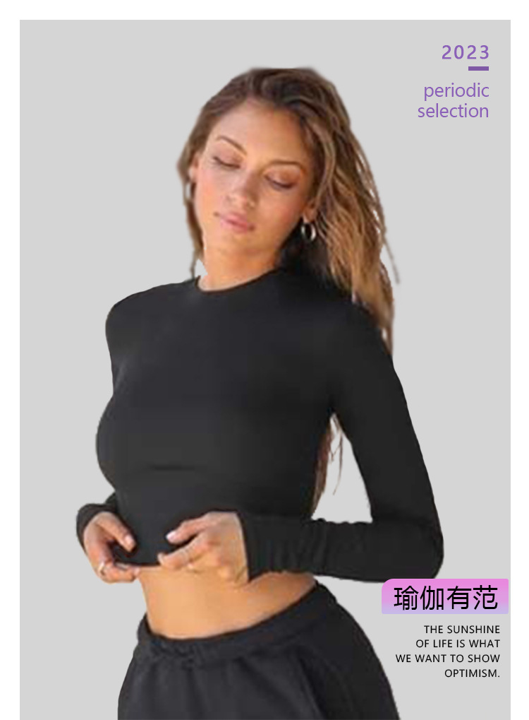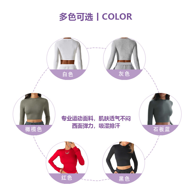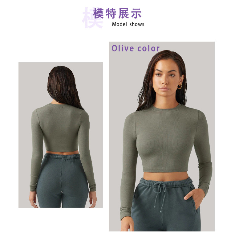 유럽 및 미국 겨울 신상품 골지 스포츠 요가복 긴팔 배를 가리는 크롭탑 피트니스 러닝 요가 탑 여성용스토어 가기